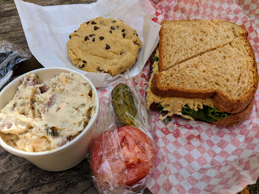 The chicken salad sandwich was great! The perfect combo of chicken and mayo with lettuce. They even added a crunchy pickle and tomatoes on the side. Chocolate chip and peanut butter cookies were delicious too. Very soft like I like them. The ham sandwich was good, but wasn't as great as the rest of the food. Unfortunately we didn't have the opportunity to try the potato salad - we got too full off the large amount of food they give you and didn't have a place to refrigerate it.