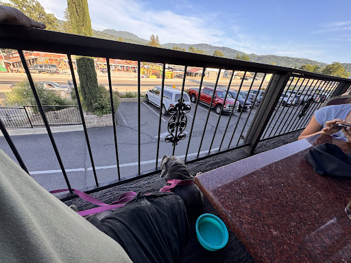 On our first night we arrived fairly near to their 9:30 closing time due to a long drive from Sequioa National Park but we still got great, unrushed service. They sat us outside on the balcony away from everyone else since we had my sister's little dog along but our server Josh was attentive and speedy nonetheless. The massive Double Best Western burger I had was stupendously flavorful and of course very filling after a long day driving while my family enjoyed their bread bowl and salmon skillets as well. The second night was a Monday and the restaurant was surprisingly absolutely packed so we had to wait a few minutes to be seated. We happened to get Josh again and despite the huge dinner crowd the service was just as excellent. This time I got to enjoy their awesome 10 ounce sirloin while my niece loved her pretzel and beer butter appetizer. Josh even had time to bring our little Zoey a doggie bowl with some water to make sure she wasn't thirsty. The prices also seemed quite reasonable especially given how Oakhurst is a tourist town that's the nearest to Yosemite's south entrance.