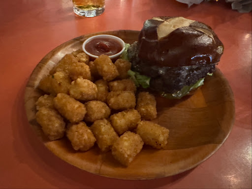 This is not so much a restaurant as a bar with a (permanent) food truck. And while the food was good, the service was extremely slow. We came in at 8:40pm on a weekday with two hungry 9 year-olds tired from a long drive. Though it didn't seem particularly busy or crowded, the line to order food stretched from the bar to the door, because you have to order from the bartender who makes all the drinks on the spot. We were disappointed to find that on an already very limited menu, half the mains were sold out, including all the vegetarian options. The food we did order (a burger, 2 salads, and some sides) took 50 mins to come up, by which time the place was almost empty (it closes at 9), and we had some very tired, cranky kids. But at least it was good. As far as ambiance goes, the patio area is pleasantly lit and is probably fairly upbeat on the weekends, especially when there's live music. But all we were treated to was the constant yapping of a dog someone brought in. Suggest they play some music, only allow well-behaved dogs, and provide a play area...
