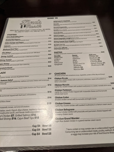 You can't go wrong with Lino's. Funny enough, nearly 25 years ago, I worked at the original Lino's in downtown Rochester back in high school (which recently is sadly now closed). Tony has done his parents proud with the food at this Lino's, as the food is as excellent as the original location and I actually prefer the environment, as it is brighter and more inviting inside Lino's North than the original Lino's used to be. We regularly have family birthday parties of 15-25 people here and they have no problem accommodating us in the back part of the restaurant. The staff are all very nice and the kitchen is set up sort of open, so you can see in there from the restaurant, which is something I personally find appealing in general, as it gives me a sort of peace of mind and confidence that my food is being properly handled. No doubt that even if it wasn't an open kitchen area, that would still be the case here, as Tony runs a first class kitchen, but still, for those that do not already have the same confidence and familiarity I do with the place, it should appeal to them as well. Overall.....if you are in the mood for fine Italian dining (or even a steak), you can't go wrong with Lino's North. I have literally never had a bad meal and between carry out and dining in, I have probably eaten there food at least 50 times. It's actually my dad's favorite restaurant and he eats there far more often...