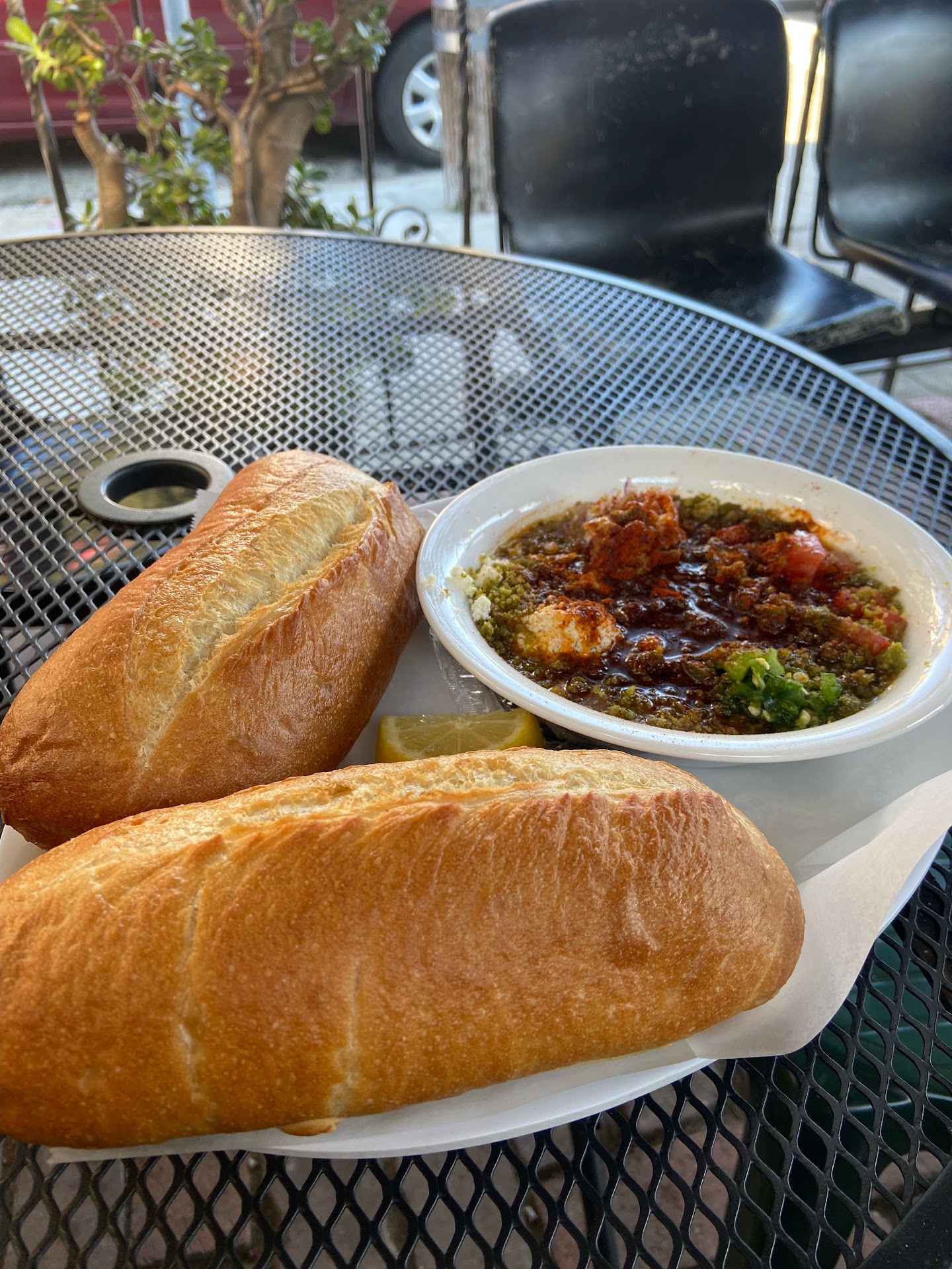Best breakfast place I've been to in the Bay Area. The shihan ful (like a fava bean stew with savory veggies, spices and olive oil and served with bread) is – not exaggerating – one of the best things I've ever eaten. It's so so good. The fata (bread chunks cooked in a garlic/tomatoe/spice sauce and served with yogurt) is also amazing as well. The drip coffee is on point – strong and flavorful (I only needed a small size to feel effectively caffeinated). Since I live in SF I ate myself past full during my visit here just to take advantage of this absolutely incredible spot. The vibe is super welcoming and the prices are incredibly reasonable. The owner was even around and said hello and asked me how everything was! I'd give this place 6 stars if I could, can't...