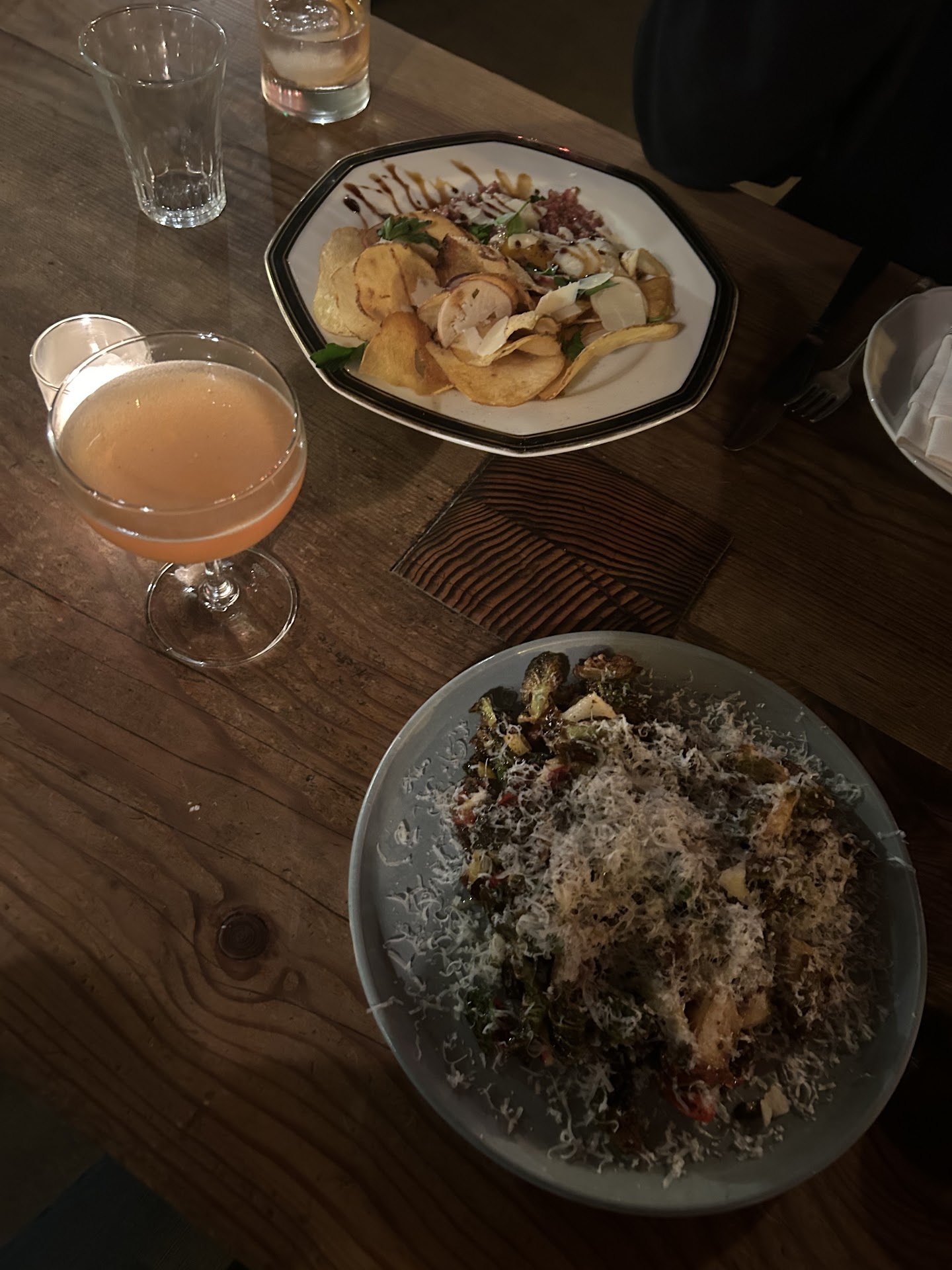 Read moreI dined here last night for Oakland restaurant week. The ambience was incredible. The service was good, it could’ve benefited from a tad better attentiveness. We got our first course and waited a while for someone to come by to offer our second course. My date didn’t get his second drink for a long time. All the servers who came to our table were incredibly warm and friendly. The steak tartar felt like a bag of potato chips with ground beef that had been sprinkled with lemon juice. The brussels sprouts were my absolute favorite thing of the whole evening aside from my tequila drink. The pork meal was plated so nicely, but the pork itself was incredibly salty so I had to drown it in the broccolini and potatoes and we didn’t even finish half of it. Same goes for our seafood plate, we didn’t finish half of it. The bread that came with it was very buttery and soggy and the seafood itself was bland. We were so unimpressed and ready to go that we just turned down having our dessert altogether and didn’t even bother taking it home either. Perhaps I’ll come back in the distant future to try food again or maybe just for the ambience...