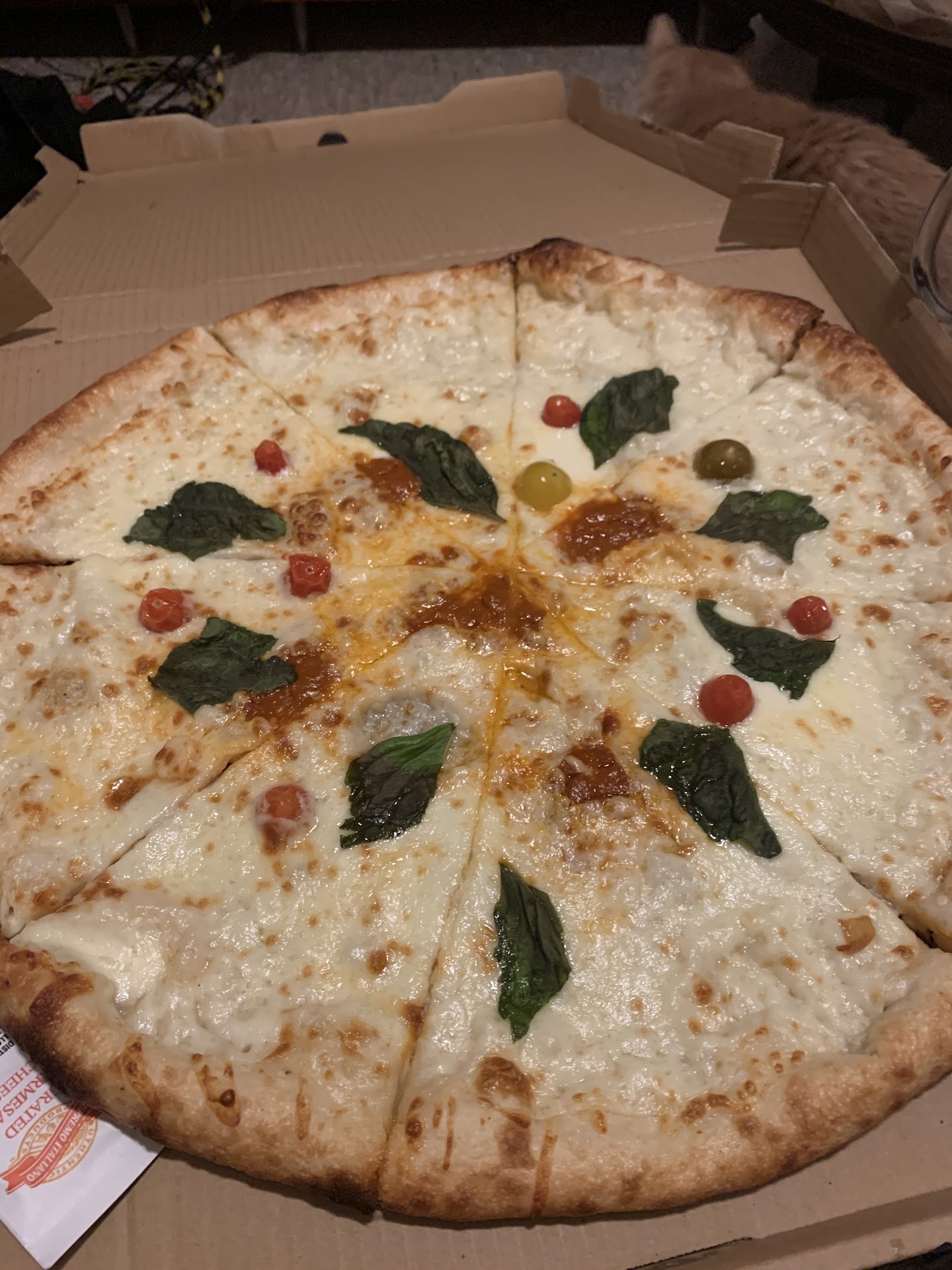 The dough was chewy and tough, and the pizza wasn’t cooked very well. IDK if they used bad yeast or their oven temperature is too low, or what, but it was not good. It was like the pizza was half baked and half steamed.