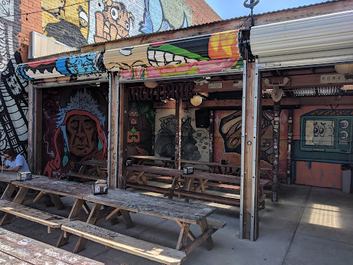Local and international street artists line the walls and patio of this 60/40 outside-inside beer garden. Sticker slaps plastered on all the remaining open spaces, add that much more character.