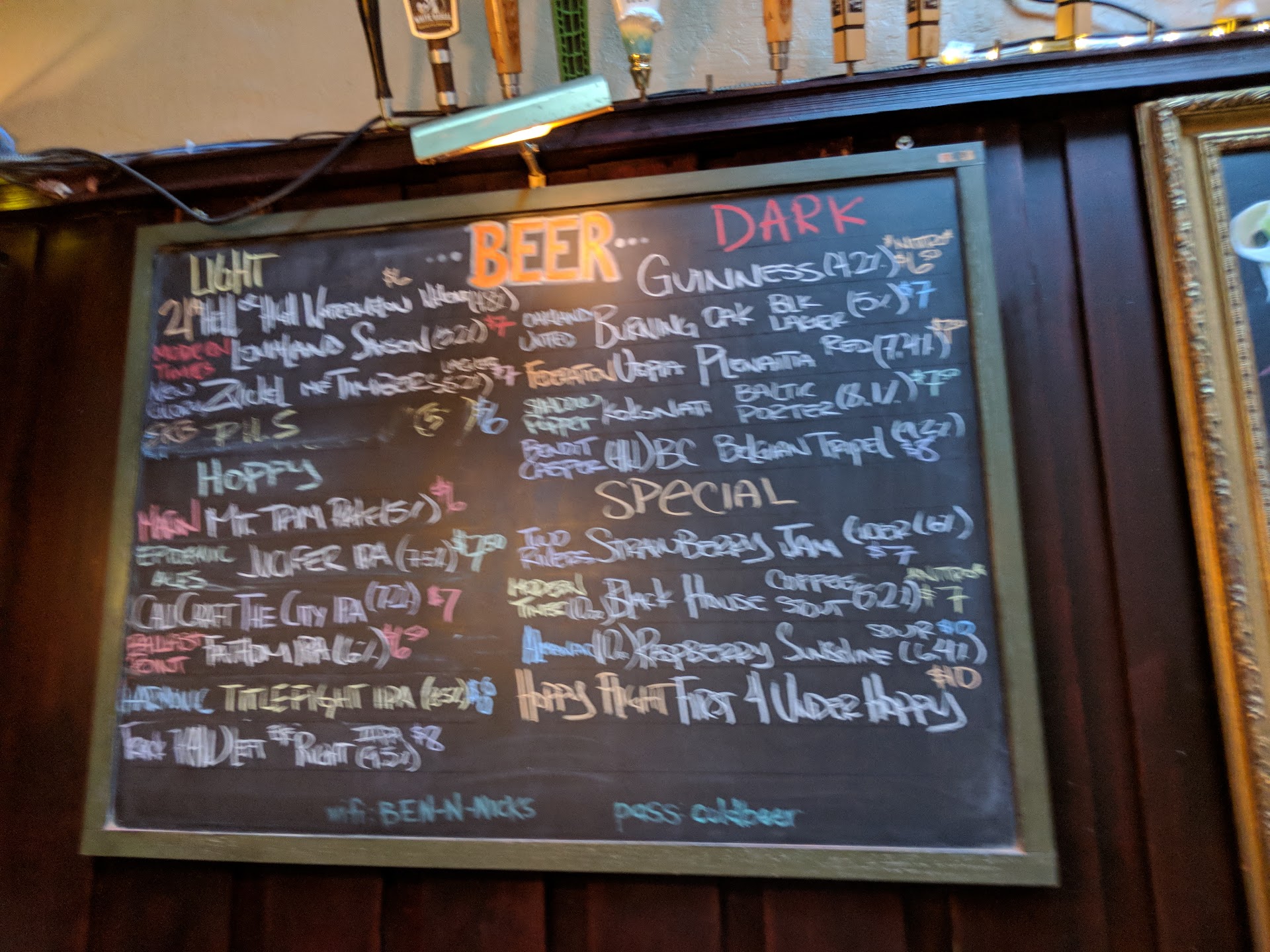 Read moreUpdate: Ben 'N Nick's has become my go-to spot in the neighborhood. The bartenders and servers are super fun to chat with, the beer selection is solid and rotates pretty frequently, and the food (nachos, chicken Club, wings, etc.) has been really spectacular the last few times I've come in. Special shout-out to the burger-- absolutely perfect and a great price during happy hour! I also took my family here when they visited from out of state, and they loved Ben N' Nick's as much as i do. Great spot to hang out and have a few beers and a solid meal!