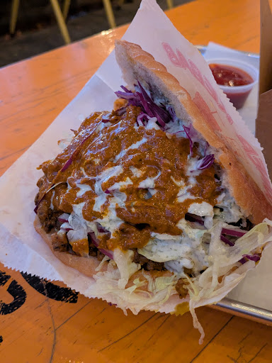 Döner made by someone who has no idea what a döner is. If you're looking for authentic döner, this is NOT the place. It was more like a giant taco than anything you would get in Germany. The food was tasty, but almost entirely wrong, and not at all what I expected. The bread was right, but the döner was poorly constructed with completely wrong proportions. It was almost entirely meat and lettuce. Practically no feta - just a tiny little piece at the bottom. The sauce was good, but was sprinkled on the top of the lettuce only, so there was no sauce on 90% of the döner. Everything was layered like a taco - a ton of lettuce on top of a ton of meat. There was way too much stuffed into the bread, like they were trying to make it look huge without a thought given to how anyone would eat it. The food was tasty, so I gave it an extra star, but really disappointing, if you know...