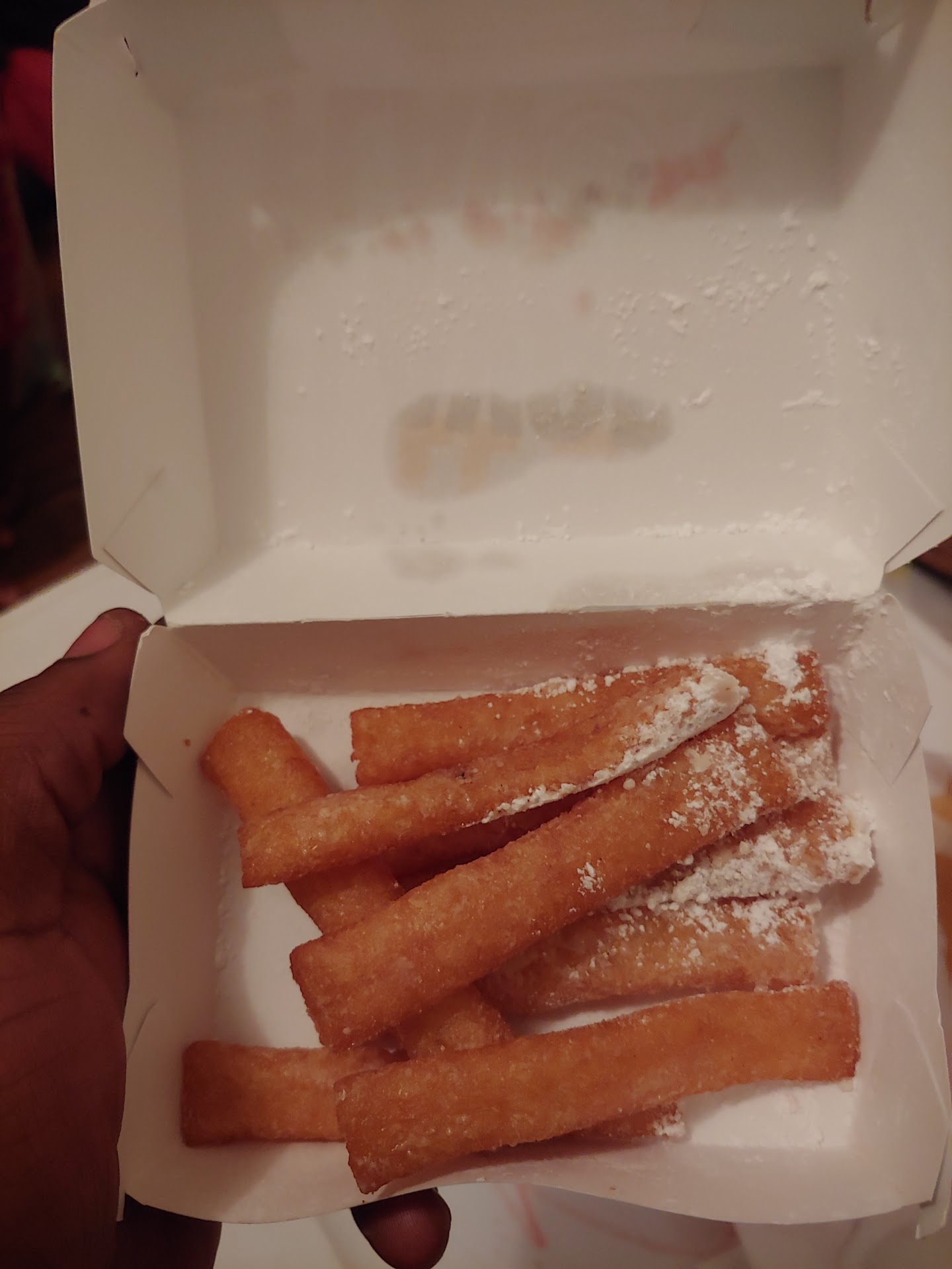 Read moreWait, wait, wait some more. The people are fine they just seem over worked and underpaid. I should know because I've actually worked at this exact location before. The drive thru literally took 30 minutes for me to go through. They had no soda for drive thru, only Powerade and pink lemonade. I had to make two orders but that option was not available in drive thru today. I had to go inside the Burger King to order my second order. The second order got to me a lot faster than the first one. They also have soda on the inside, hooray! Now for the kicker, I ordered some of the new funnel cake fries. They are wonderful tasting, however mine seemed to be cold. Stone Cold (not Austin). Now I understand they are understaffed and all but I expect better effort from the employees when it comes to my food. I only made 8 dollars an hour when I worked there, however I made sure that my quality wa.s on point with my service. I normally don't do this but I have included a picture of my funnel cake fries. They were horrible. If you must go there you have to be patient with...