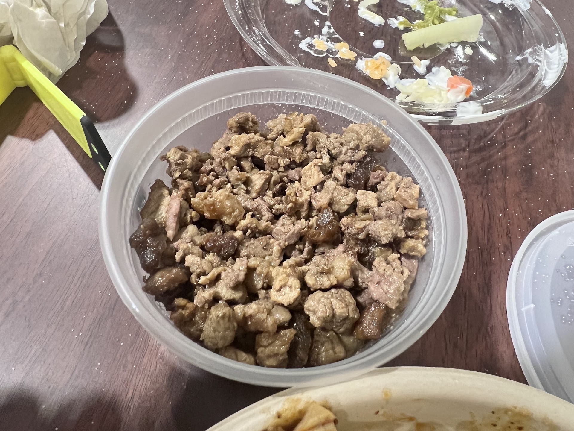 Read moreThis place is disgusting despite its neat appearance. The food is really bad and I tried eating here three times. Reference the photos. They use low quality meat; the beef was greasy and had gristle in it. The chicken is thigh meat, it’s gross, and they do this to save money. This dark meat is inferior to the chicken breast that you should find at this price level. I also ordered chips and guacamole. They mixed watery pico de gallo in it (what?!) and this resulted into some inedible mystery concoction which threw into the garbage. Rice bowl had over cooked nasty rice in it.