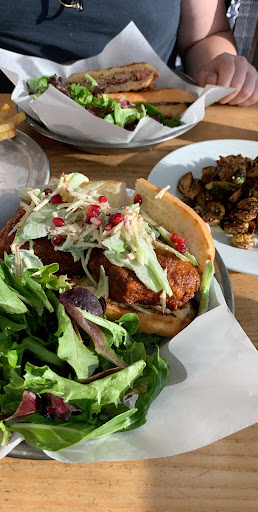 Read moreOn a warm, sunny April Sunday night at around 7 PM we two arrived, and every seat was taken, and people were waiting for seats. We ordered at the counter after about a 7 minute wait - no problem. Miraculously a 2 seat table opened up next to the windows right as we finished our order. I had the corned beef sandwich and cole slaw - both were good. He had the Cuban pork sandwich and tallow fried fries with pickle juice aioli - really liked both. I thought the fries were good. The retro updated interior is clean an inviting for casual dining. The staff was pleasant, and reasonably chill considering how busy they were... except for one cranky person. Tables weren't being bused, and people who'd been waiting for seats were sitting down and gathering up the previous diners' plates, etc. The cranky buser admonished three tables, including us with, "next time wait for us to bus the table before you sit down. This isn't how we do it here." My thoughts, but not my words were, 'when it's crowded, and people are waiting for seats, bus the tables faster so people don't have to mill around like vultures waiting for the object of their desire to die.' I recommend it, and...