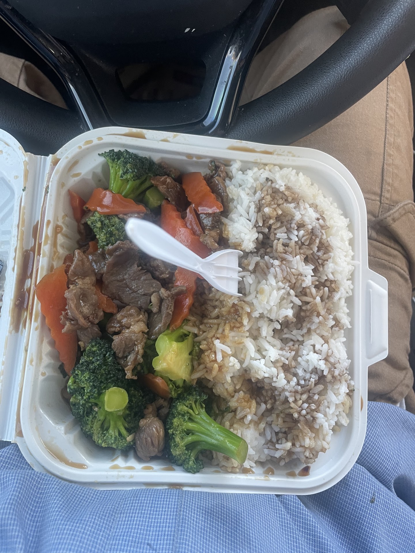 I haven't even pulled off from in front of the location because I wanted to make sure that I left my review so I didn't forget and while it was fresh on my mind I didn't even make it home before trying some of my food because it smells so delicious. So it was a little bit disappointed because outside the place doesn't look that great so I was nervous about whether the food was going to be good or not because outside but this is why they say do not judge a book by its cover. They do not have steam tray anymore but they have rice plates which you can either get steamed rice (white rice,) fried rice, chow mein for an extra dollar you can add meat. They have a variety of different items you can choose from for Rice plate. I asked what she recommended she told me orange chicken and Mongolian beef so I opted into the orange chicken because I was already looking at it and let me tell you I was not disappointed total came up to 10 bucks I did not have to wait more than 10 minutes the food was hot fresh flavorful and quick. If you are in the area or even if you're not in the area and you want some cheap but good tasting nice quality food come here the orange chicken was not too overwhelming with the orange flavor but you can tell that it was a fresh orange sauce it was supposed to be spicy but it wasn't super spicy to me the batter is super crispy and crunchy is lightly coated with just the right amount of sauce and it's enough meat in there to where you're not getting overwhelmed with the batter the chow mein had Fresh Veggies like bean sprouts green onion white onions and cabbage and was not overcooked and was flavorful. Easily 8.5 out of 10 will definitely be back. I'm in the car right now debating if I want to go back and order the Mongolian beef or not. Definitely one of the better places in Oakland I will say the regular menu is kind of expensive though but if you can afford it get it and a plus is a ginger...
