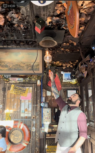And!! I had a blast just chatting with the guys serving beer. They’re more than bartenders. They were storytellers. I kept asking them about the history and all the quirky details inside, and then one of them actually lit up the original gas lamp. Yes, gas lamp!! One of only two left in all of California. How cool is that!!! In that moment, I swear it felt like I’d been transported back in time. Touching the old tables felt like touching the past itself.