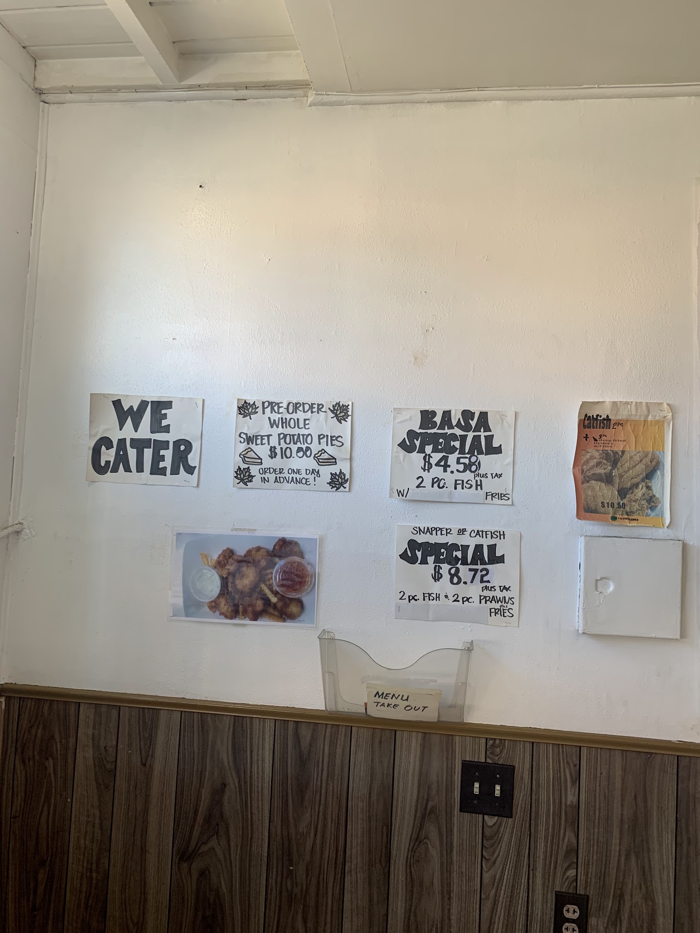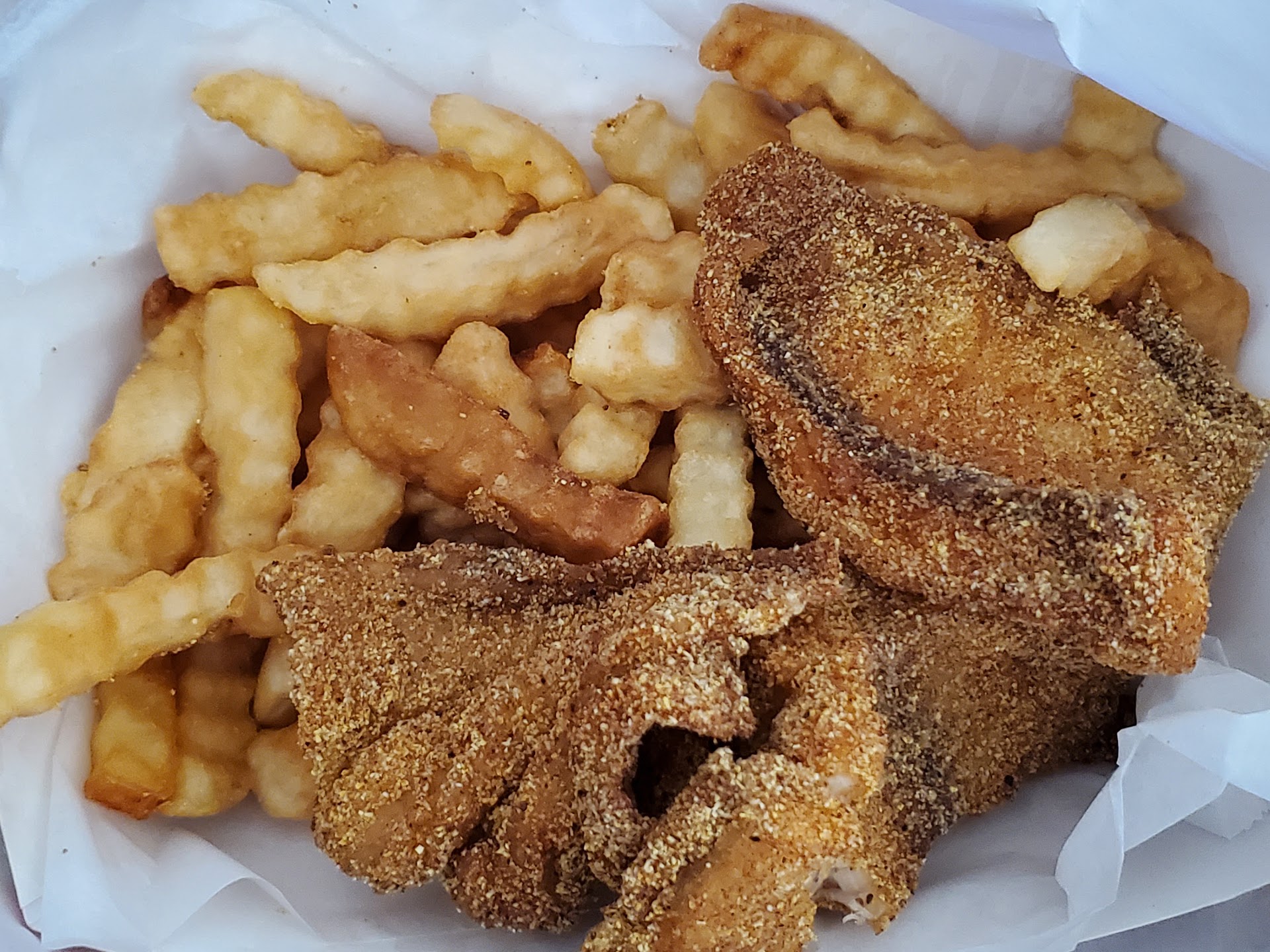 ย ย ย Read moreThe catfish was great. Prawns good - not what I expected, but nicely done. Beware the menu prices are quite a bit higher than on menus that can be found on the internet. And, the sides are not included, for the most part. So if you select potato salad or slaw, you'll pay extra. Somehow I did not end up with fries on one of my orders, but these things happen. I will return - just plan to add $4-5.00 to the menu prices you can see online. Really...