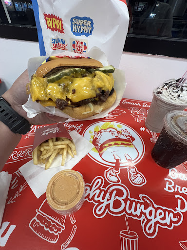 The space is bright and the decor is really artistic and engaging to look at. One note: If you're going in March 2025, just remember the business is NEW and working out kinks! They were clearly still getting their bearings as a new restaurant when I visited (and very adeptly dealing with huge crowd and line out the door, so kudos to staff on their efforts!) If you visit, be prepared for a long wait and potential snags (for instance, while I was there something in their ability to make shakes went down, but they quickly responded and recovered). This is to be expected when opening a new business that's facing huge crowds, and a little patience and understanding from customers can go a long way in setting them up for success long term. Super excited for Hyphy Burger to stick around and...