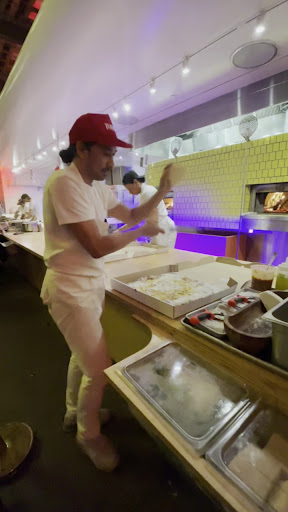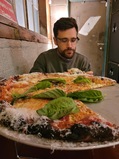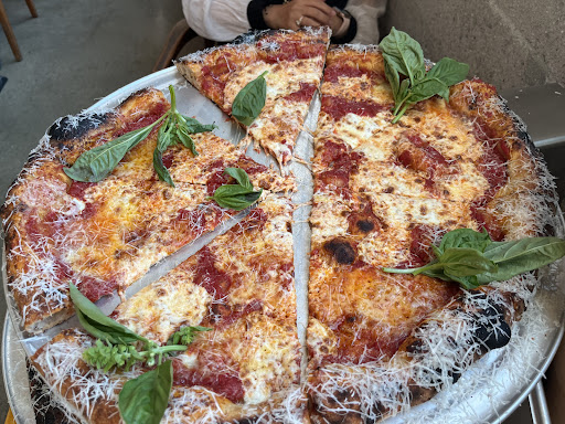 Read moreThis is a a pizza worth having 🍕. When you step into this establishment you are surrounded with an elevated yet no frills esthetic that leaves you thinking - wow I am going to eat something amazing. The yellow squash tiled, large double wood fired pizza oven warms the place while the sounds of conversations fill the walls. The eclectic speakers scattered through the building casually playing joyful music while whisps of pizza orders fly down a wired expo line framing the open concept kitchen. Behind the row of skillful and smiling team members hand assembling each element of these pizzas, you see rows of see through refrigerators where the dough patiently rises waiting to be hand crafted into a pizza. Just as the pizza comes out the oven, crisp and charred to perfection - the pizza is blessed with a thin layer of freshly grated parmesans as if you woke up to a layer of snow on Christmas morning. This place leaves everything open to welcome you to experience the joy of their food while Junes staff enjoy the pleasure of you coming to eat it. Despite not having a pepperoni pizza (sorry I’m a sucker for pepperoni) this place left my wife and I full to the brim with a few slices to take home for the next day and a new place ready to recommend to our...