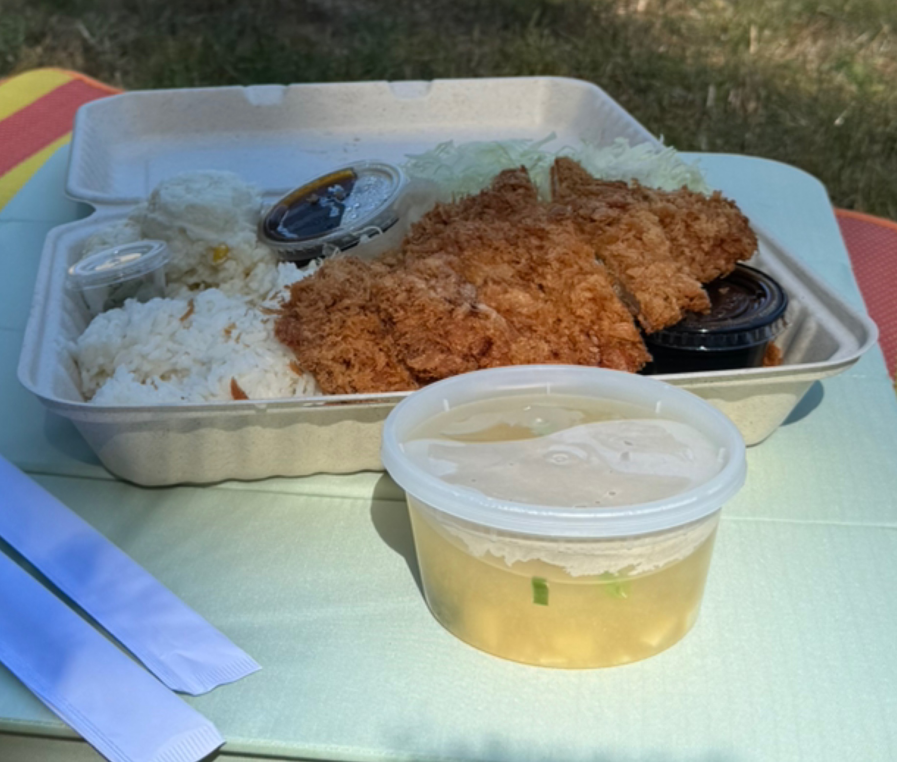 A few minutes later, the chef came. I asked her if she makes the katsu herself or if they're frozen and store bought; she makes them from scratch herself and buys the meat in the morning. She started her business as a ghost kitchen because finding staff and an affordable location was difficult around here. I was reassured and placed an order. She was very nice!