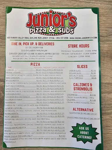 ย ย ย Read moreThis is the first time my wife and I have had the pleasure to eat at Jr's. We ordered two meatball sandwiches and a slice of pizza. We ate outside in our fifth wheel camper (from Florida). The experience was so good that I had to go back in to tell them that it was the best pizza and meatball sandwiches that I have had in over 50 years. I told him, that if I lived close by, that we would eat there several times a week. Very personable, reasonable price, very clean restaurant, highest quality of...