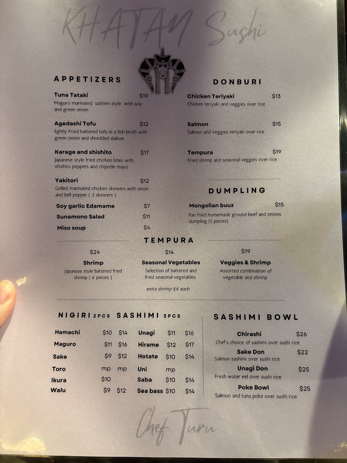 Read moreWow I was so excited to find Khatan sushi, I can’t shut up about it. The staff (and owners) greeted us like we were old friends. The food was OUT OF THIS WORLD. Amazing sushi with a touch of international influence (see: first Friday roll with burrata and mustard sauce!) We also had the chef’s special beet marinated salmon sashimi… I’m still dreaming about it!! The service was friendly and prompt, and the atmosphere was truly cozy and inviting (loved the wooden flatware and glass candle holders). I can’t wait to come back and try the rest of the menu, thank you so much...