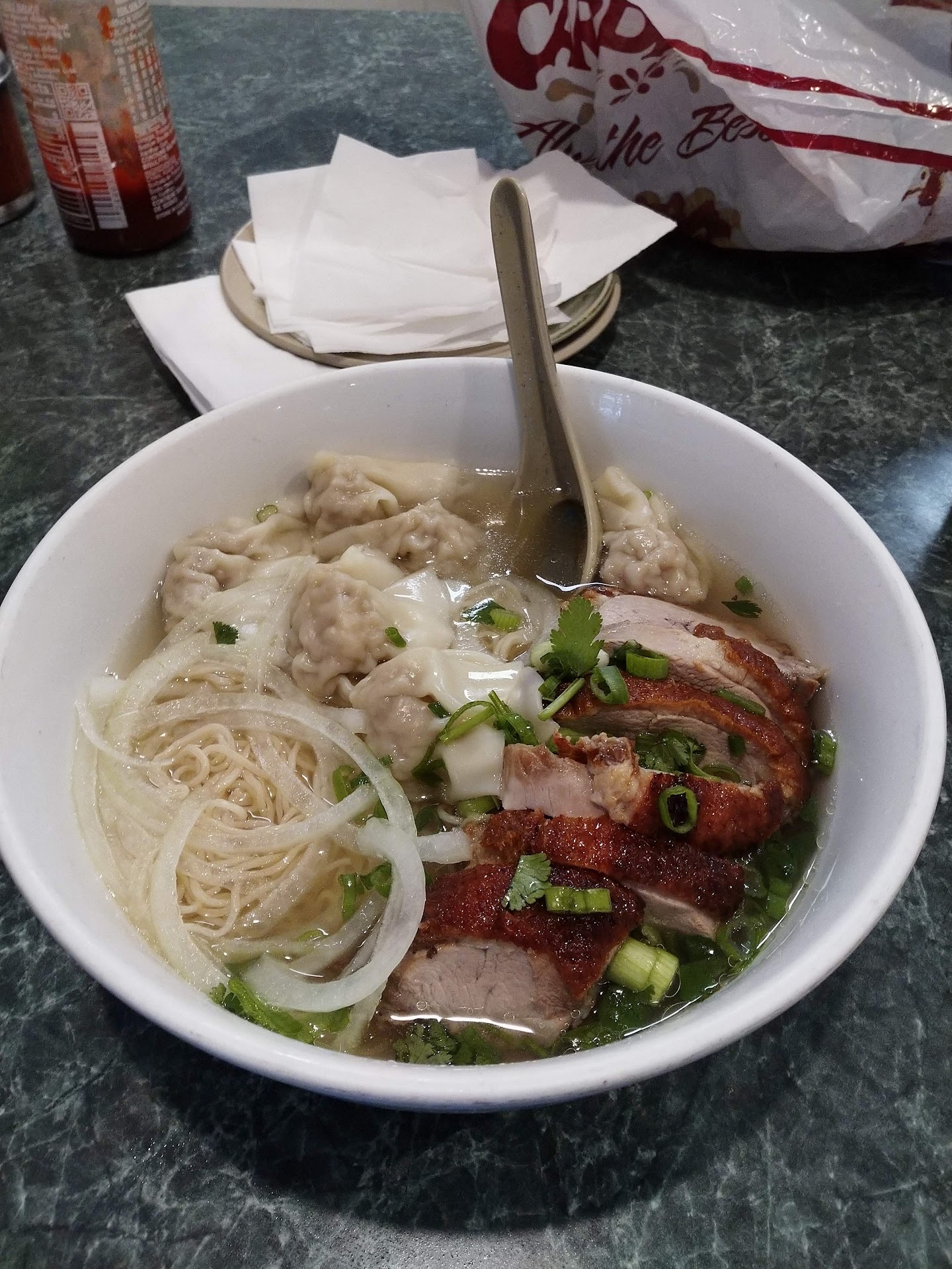 Read moreGood food, great place for duck, Asian BBQ pork and BBQ ribs etc. Large amount of menu items. Their egg Foo young is amazing. Picture is their wonton and egg noodles with Peking duck pretty good. 11.00+ unfortunately, they haven’t allowed dine in since the start of the Covid pandemic. Prices have also raised $3.00 plus per item...