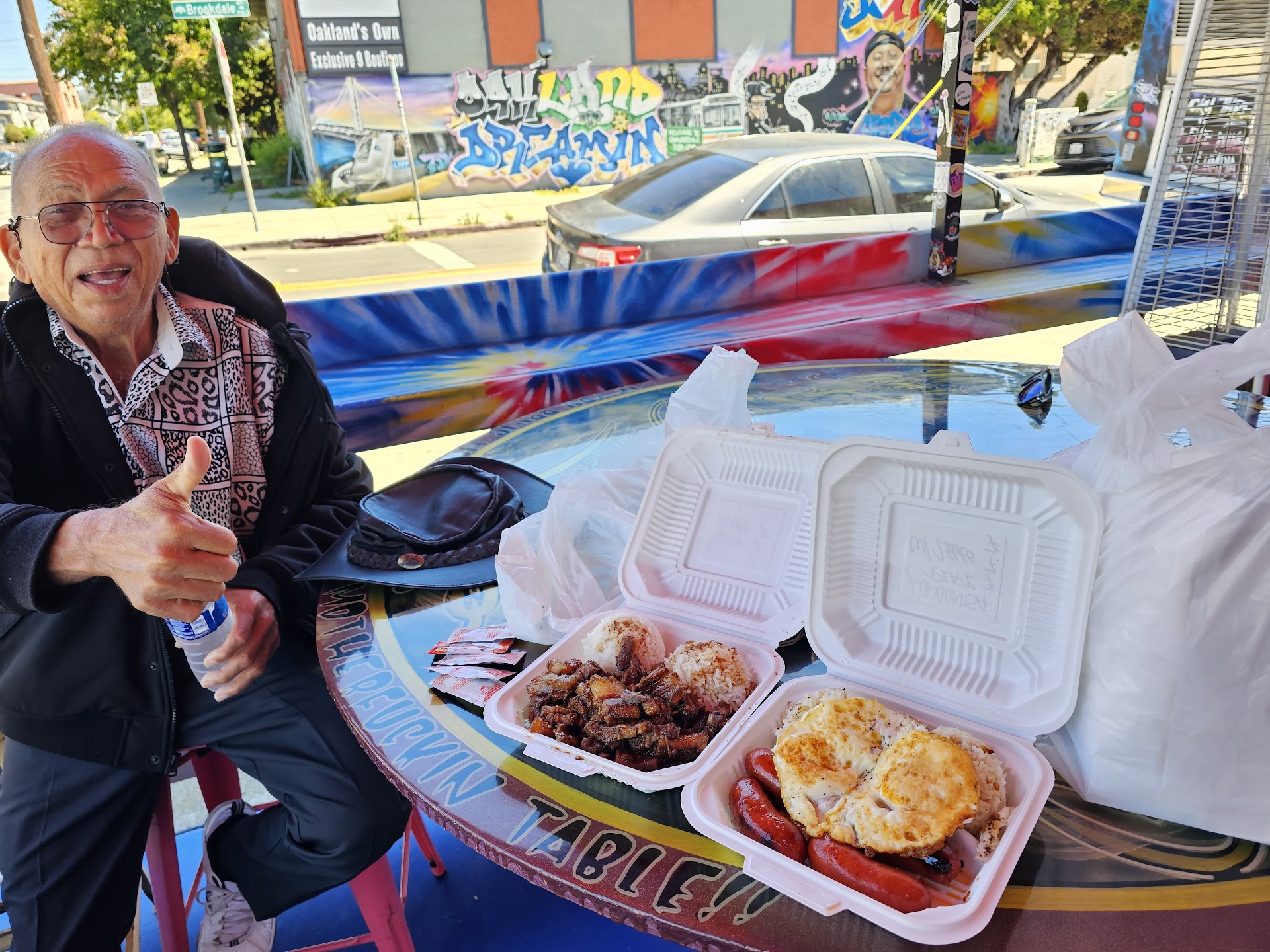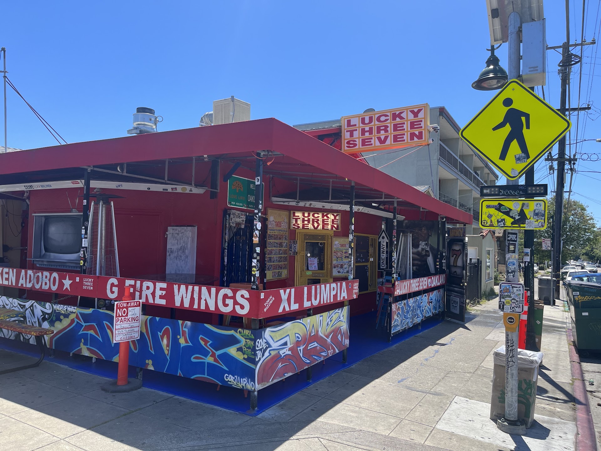 So this is a outdoor dining restaurant located on a busy residential neighborhood corner. But don't let the location stop you from enjoying the food. I was referred by my sister who doesn't even live in Oakland and nor do I so when I tell you what's good it's good. I got the chicken adobo the spicy wings and two egg rolls. The egg rolls have to be about 10 in Long, the wings are just the right amount of sweet and spice and fried to perfection, the chicken adobo came with rice and the meat was literally falling off the bone. The only reason I rate this place at a 3 is because when we arrived at about 6:30 they literally had ran out of everything. But other than that I think it deserves a five for sure as far as the quality of food and service. Our wait was about 15 minutes but they seating and heat lamps when it's a bit chilly outside. I'm definitely going back when they open so I can try more...