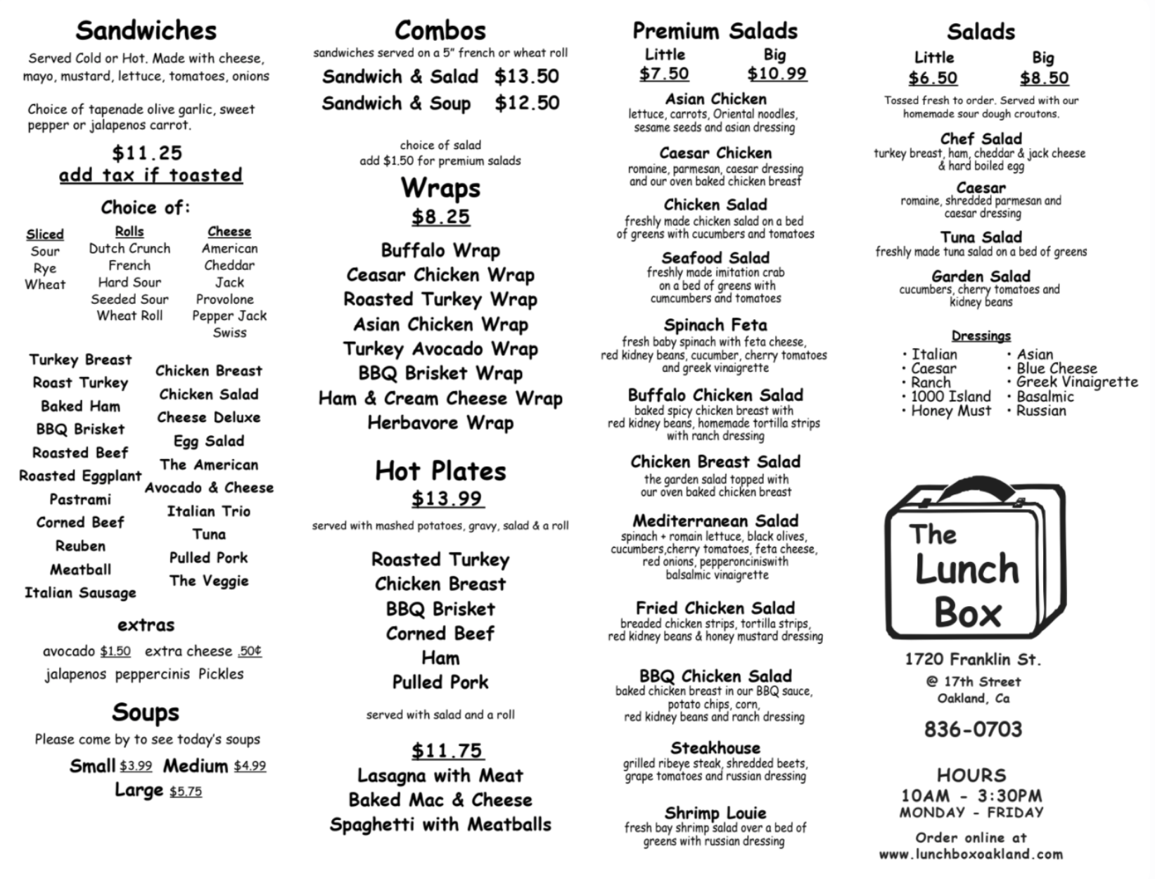 The Lunch Box probably makes the best sandwiches in the world in my opinion. I live right around the corner and always pass by them. There's always a crowd waiting outside their storefront. They have picnic benches for those who are waiting or want to eat outside. It's a great place to pick up lunch and go somewhere to eat like Lake Merritt.