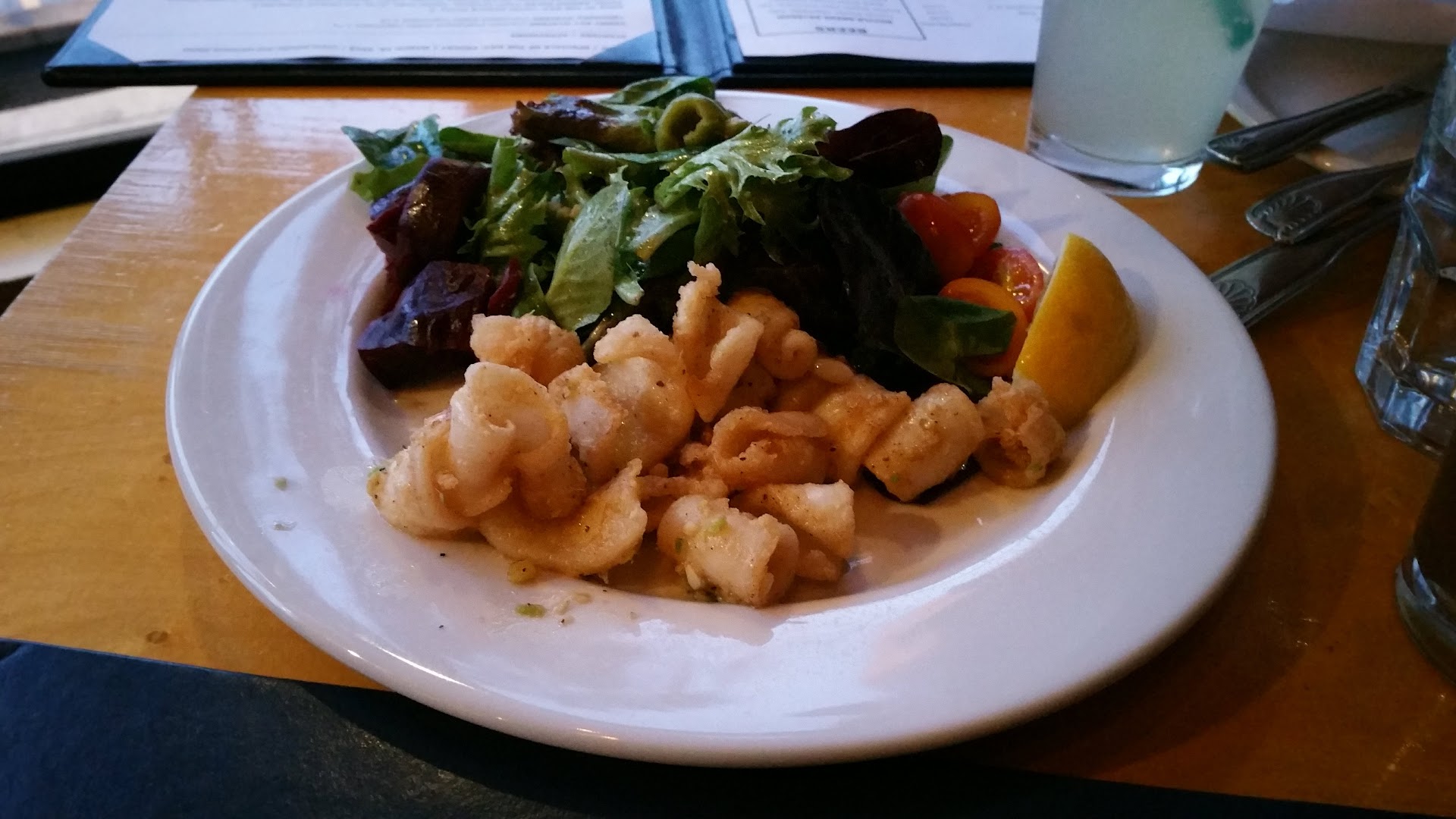 In the past we have both enjoyed the pan fried calamari. The potential is so high, but the execution so critical to what a cook is capable to produce. And does it make it out of the kitchen? It did for us and it was not nearly anything like previous visits. It was greasy and the breading wasn’t there it was really odd like the oil was too cold but warm enough to cook the food but not set the crust as it all looked like it was rolled in oily bread crumbs. And a server served it. We hadn’t been there in a year. We’re hungry. Wasn’t horrible.