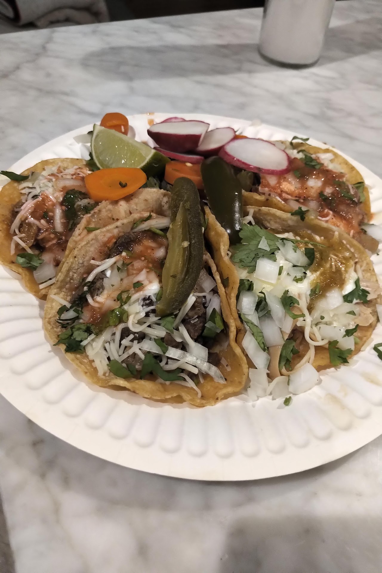 Read moreThere are two taco trucks, #1 and #2, both situated in Goodwill's parking lot. According to their signs, there is a #3 somewhere (dunno where). #1 takes their time and slowly cooks their meats after you order - up to 10 minutes if there's a line - I tried asada, chorizo, and carnitas tacos. All were excellent, especially the crispy carnitas. Asada was minced. #2 has fish and shrimp tacos. I tried their fish tacos which were surprisingly meh, too much batter and not very fresh tasting. As a point of reference, the chain Rubio's, are much better than these (especially if you do Rubio's Taco Tuesdays and get their especial). In terms of Oakland taco trucks ranking, this one is slightly behind Tacos El Gordo, but if you want to eat before 5PM, #1 is a good choice. Not surprisingly, #1 had longer lines than #2. Remember to ask for...