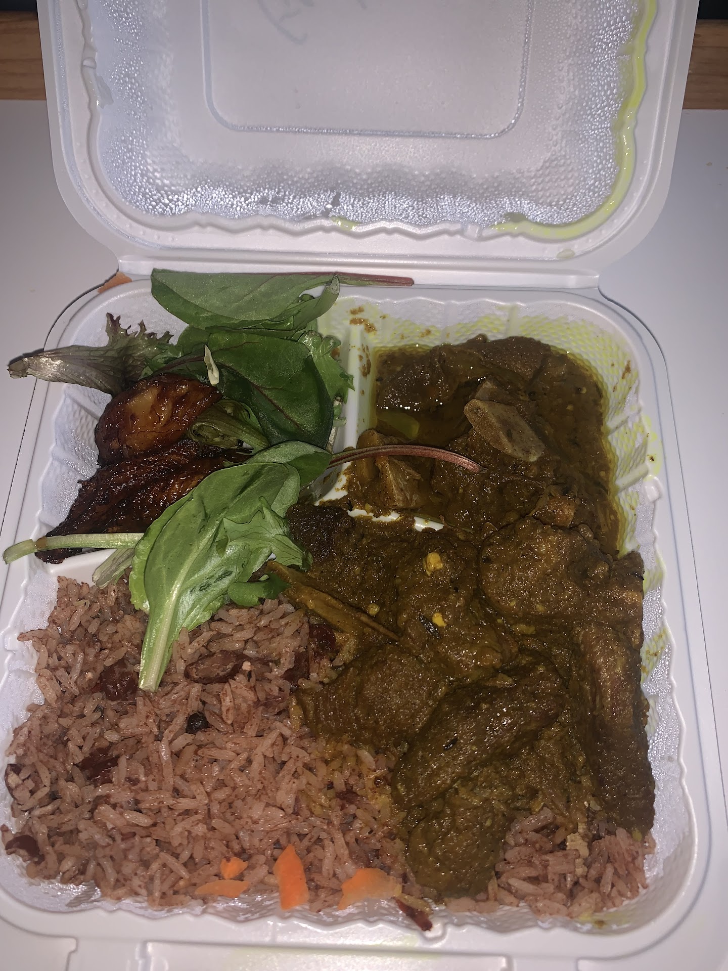 The oxtail dinner I got w/rice and peas and vegetables but the āvegetablesā was just cabbage. Everything lacked seasoning, flavor or any savory(ness). The cabbage was pale, not glossy or colorful or showed any signs of life and the rice and peas although light and fluffy and cooked to perfection lacked any flavor whatsoever. The oxtails showed some promise with a hint of a sweeter flavor and some spice but they gave you one large oxtail that was tender and then 5 pinky sized oxtails that were all gristle and too tough to chew through and at $25, Iād call this a bait and switch tactic, and unscrupulous business practice at best. They also did not honor my request to put gravy on all of my entree not just the one oxtail that was edible. If they clean this up, and prepare the oxtails as they should and thatās tender and falling off the bone and flavorful so you can suck the bones, Iād be open to patronizing them again as there are just no really good West Indian spots Iāve found in Cali with the exception of when I was working in Menlo and was pleasantly surprised by a spot Coconuts Caribbean Restaurant & Bar. They had by far the best oxtails Iāve had thus far, but Iām not trying to drive all the way to Menlo to satisfy my oxtails jones. Hope Minto...
