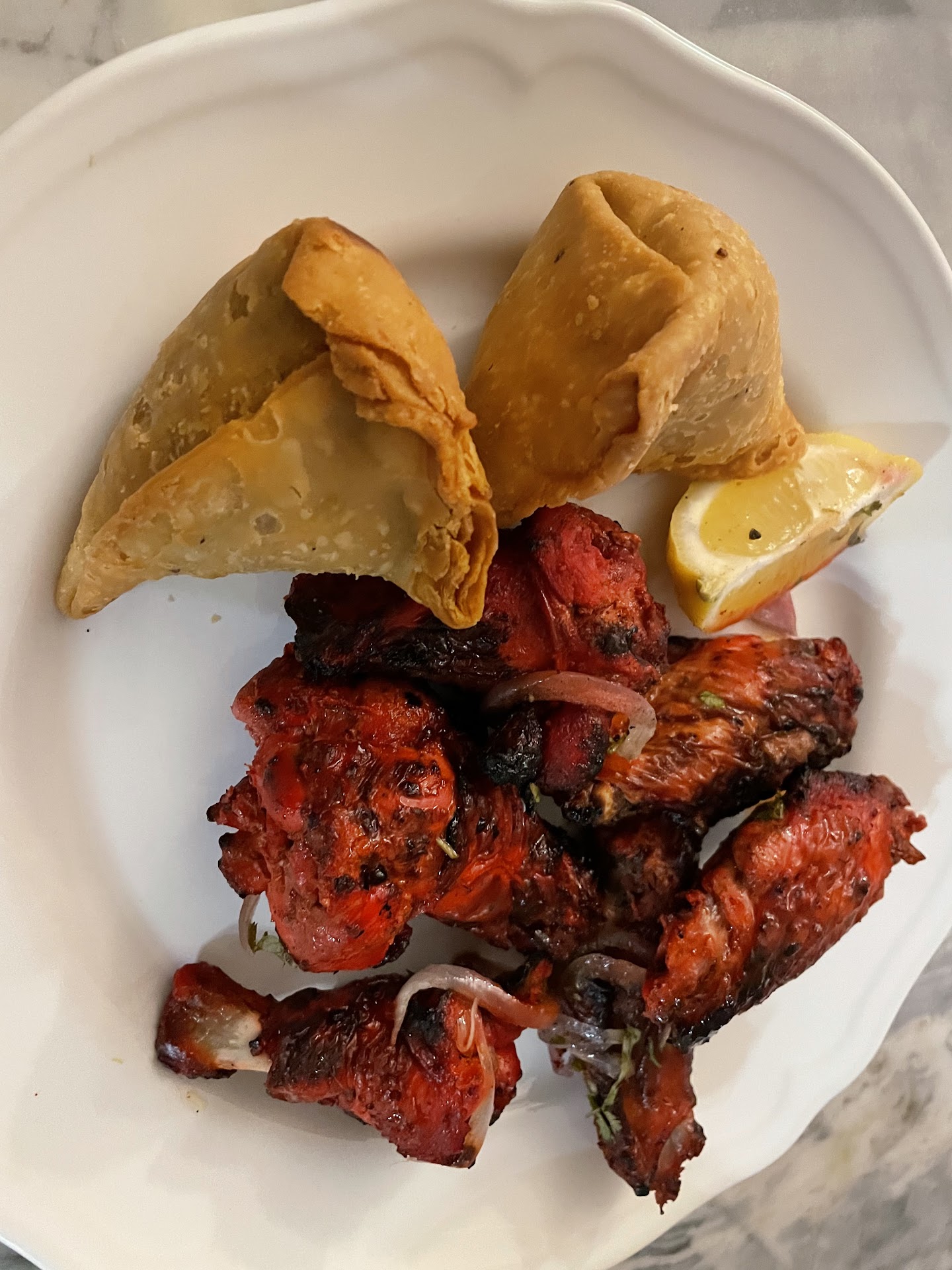 Read moreIt was raining and I was craving samosa & chai so we got samosas as an appetizer, they were freshly made and crisp on the outside & the filling was hot and spicy inside. For our mains we got butter chicken with rice and garlic naan, it was delicious. The color of the butter chicken was so red I thought it would be crazy spicy but I guess that’s just the food coloring because it wasn’t. Topped dinner off with mango lassi- probably my favorite part of the whole meal. Thick, flavorful and decadent just the way I like it. We got food delivered through DoorDash and it was packed up really well, no leaks or spills. The samosas came with tamarind and mint coriander chutney. They sent a little flyer saying they’re a small business and we can order directly instead of DoorDash/grubhub. I would like to get chicken biryani next time when I...