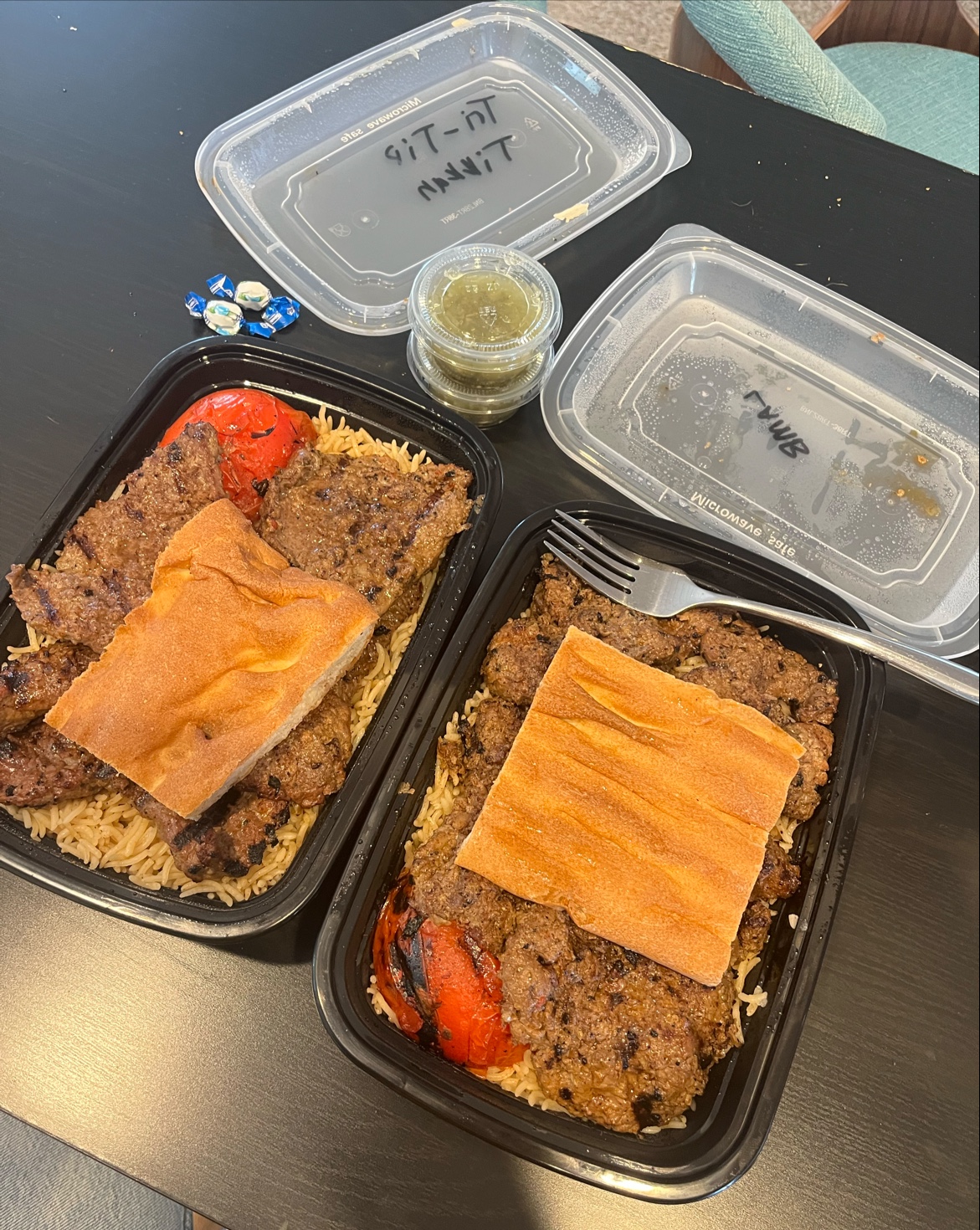 -pita + hummus - this is when I knew we were in for a treat. We got this as a starter to help tie hangry kids over. The pita was amazing and the hummus spices were so good. If my 4yo hadn't loved it so much I probably would've eaten it all myself before the other dishes showed up. lamb shank was truly fall off the bone meltingly amazing. The sauce was also so good. My 4yo couldn't get enough! It came with a full plate of flavorful spiced basmati rice that my 2yo ate by the handful + perfectly crisp fresh salad. The amazing salad dressing meant I couldn't help but eat most of it... which is saying something because I'm usually averse to cucumbers. combo kebab with chicken and tikkah was well cooked, moist and not dry. Our 4yo also gave the chicken a thumbs up too.