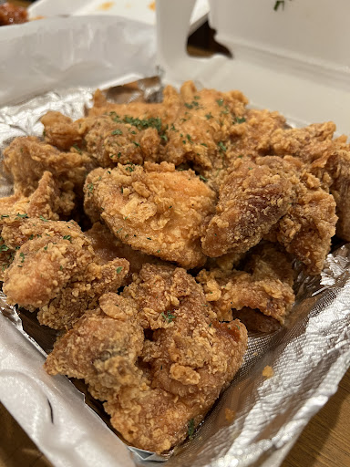 I always ask for a half-and-half order of Garlic Soy and Sweet & Sour chicken. Their chicken goes real well with a side of rice (which would have to be ordered additionally), though I know many people just down the chicken on its own. Cheese corn, yogurt soju, and tteokbokki are other popular orders. Nowadays, I tend to call in (20 min. before!) and just grab chicken to-go. They're considerate to include a sizable plastic heat-sealed container of their pickled radish and another of their salad appetizers in to-go bags. Bringing food home is nice because you can make & eat your own rice in quiet comfort, haha.