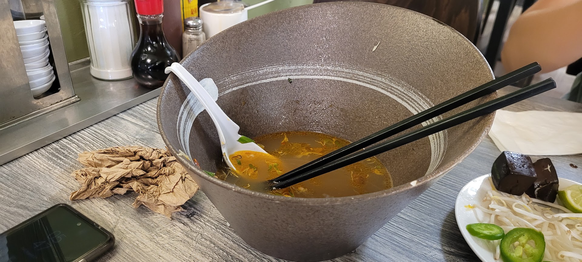 Read moreFood: 4.5 stars Cleanliness: 3 Service: 2 stars I've been coming to this place for years and always like their food. Their old location nearby Lake Merritt had more a homey feeling to it. Now the new location looks more like an overpriced Vietnamese restaurant. However, the quality of their food has remained consistent. Good choices are the beef pho, grilled pork vermicelli and the Hanoi vermicelli. Rice plates are good alternate choices. However they suffer from skimpy portion syndrome and you could end up going home hungry. A big plus is I hardly suffer from dry mouth and headaches after eating at this place. My guess is there's less MSG in their food. The dining area is clean for the most part. And tables are cleaned up right away after the customer leaves. Areas for improvement are the bathroom and parking lot areas. Service quality for the most part is average and acceptable. Workers are fast and efficient. Sometimes young workers tend to get caught up in coversations with their own or their own smart phone. Warning: workers speak little or no English at all potentially screwing up your order. My biggest pet peeve is workers, including the owner, NEVER say thank you. Did I say the owner. These include situations like leaving a good tip in front of THEIR face. I supposed this is a common experience in most Vietnamese restaurants. I wonder if there's even a word for thank you in Vietnamese. A reminder if this is going to be your first visit: PAY AT THE CASHIER after you eat. There's no visible sign anywhere. And remember your table number. You don't want to pay for somebody...