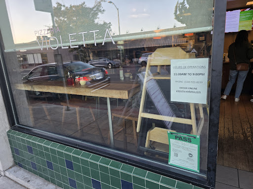 Pizza people have strong pizza opinions, myself included. I'd describe these slices as somewhere between New York style (large slices, foldable) and Neapolitan (flavorful thin crust â a little more floppy than NY style, toppings include Calabrian chiles) and I'm here for it. The tomato sauce leans sweet, complementing savory flavors and salt levels. Slices and whole pies, rotating Farmers Market toppings, beer, and wine for now â gluten free options, salads, and sandwiches to come. I look forward to my next visit and seeing how Pizzeria Violetta evolves.