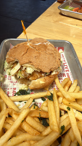I ordered a gluten free fried chicken sandwich. It comes on gluten free bread and it was so delicious. I also switched the chips out for fries. The fries are cooked in a dedicated fryer, so thereās no risk of cross contamination.