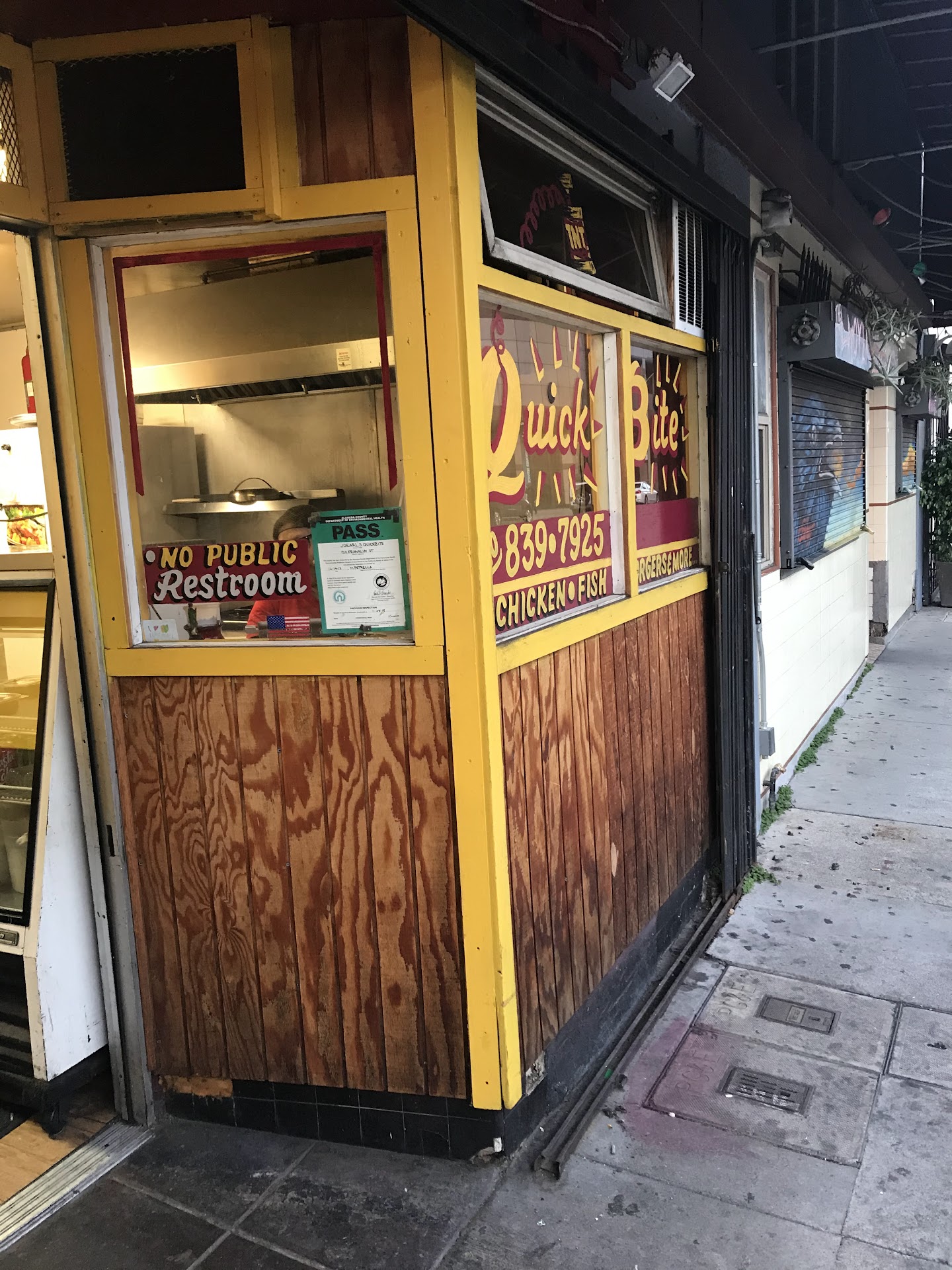 Β Β Β Read moreAt first glance, QuickBite may seem like your ordinary, average hole in the wall, but upon exploration, you find that it is so much more than that. It has a welcoming atmosphere, the service is top-notch, the cook is very polite, and you only wait about 15 minutes for your order. The food here is very good. The menu ranges from chicken, to fish, along with fries, or potato salad for the side dishes. QuickBite also has deserts. The prices are reasonable, considering QuickBite is surrounded by high priced businesses. I hope QuickBite will continue to serve it's loyal customers here in...