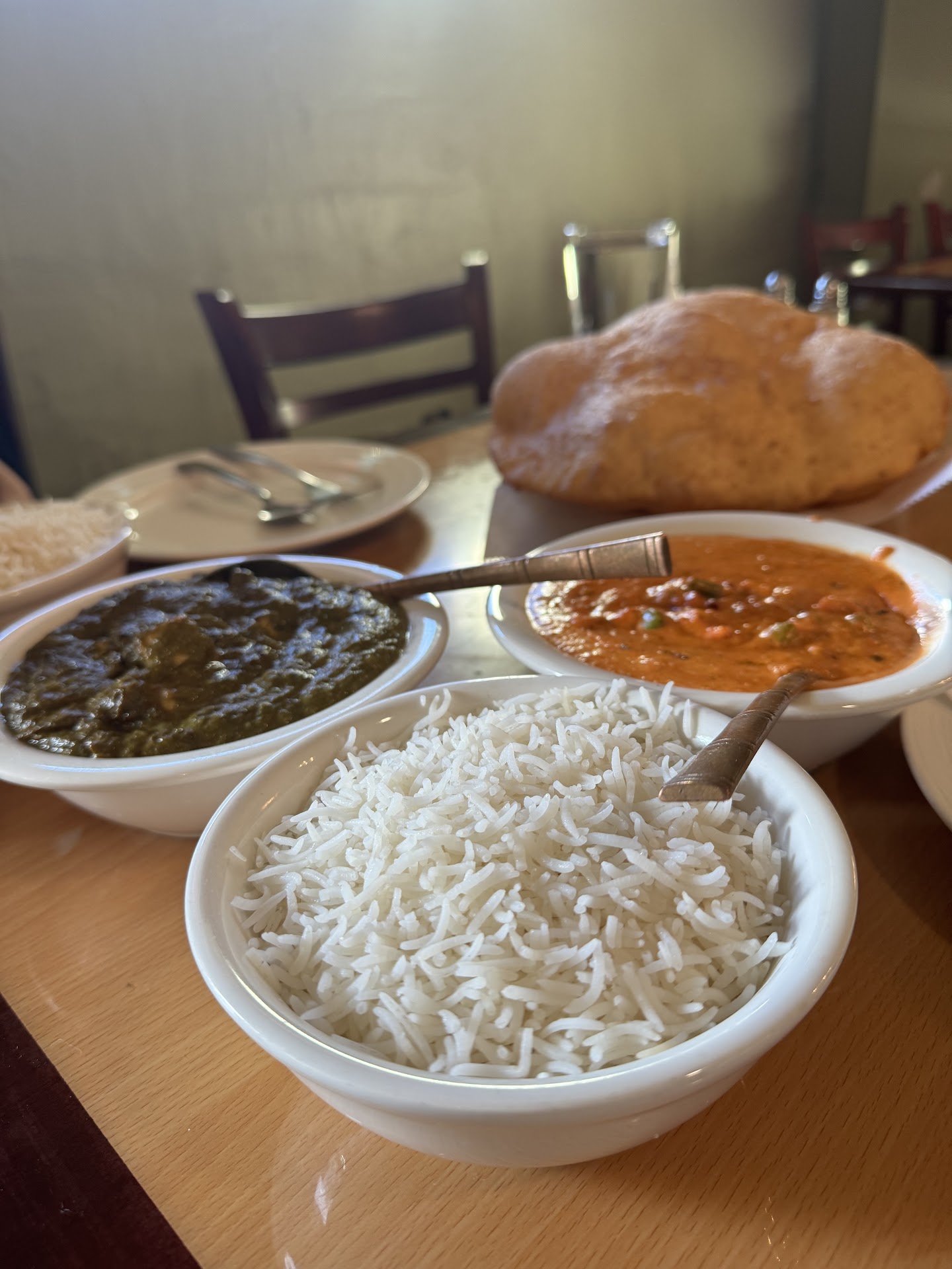 If, like us, your favorite indian food place closed, try this place. We called the restaurant and picked up our order about 20 minutes later. The food was not quite ready, so we waited about 5 minutes. Warning, look for the Kerry House awning- the place is under it. We are about 10 minutes door to door. Our food was so hot we had to be careful dishing it out. We enjoyed chicken tikka masala, tandoori grill, lamb curry, and dal makhani. Since it was our first time ordering, we got everything medium. It was hot enough to complement the spiciness and leave some burn in your mouth, very enjoyable. We also had veggie pakora and veggie samosa. We ordered plain naan and garlic naan. The last of the naan was used to mop up the curry and masala sauces. I even got some papadum. We paid $83 for all that Indian food wonderfulness. We will...