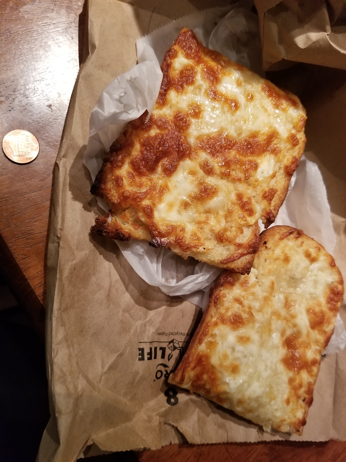 Read moreWe live in the neighborhood so we do our best to support the restaurant. We've met the owners and they are delightful but years later I think I'm giving up. Every time we go there is some sort of an issue. Wrong items, missing items, ridiculously slow service, you name it. Every single time we get take out they screw up the order and have mostly fixed it but why do I need to check every little thing? They have given us credits that were mysteriously missing the next time we come in... Last night we didn't get an online confirmation so we called ahead and was told it was ready. Upon arrival my kid was handed the order and headed out. I was elated it was actually ready but then I realized they didn't give her all the food... ah yes there it is... The food is delicious for sure but it's just not worth it anymore. And our favorite, the garlic cheese bread has gone from 4 large slices to 2 smallish dry crusts of bread (note the penny for scale) for 6 BUCKS?!?