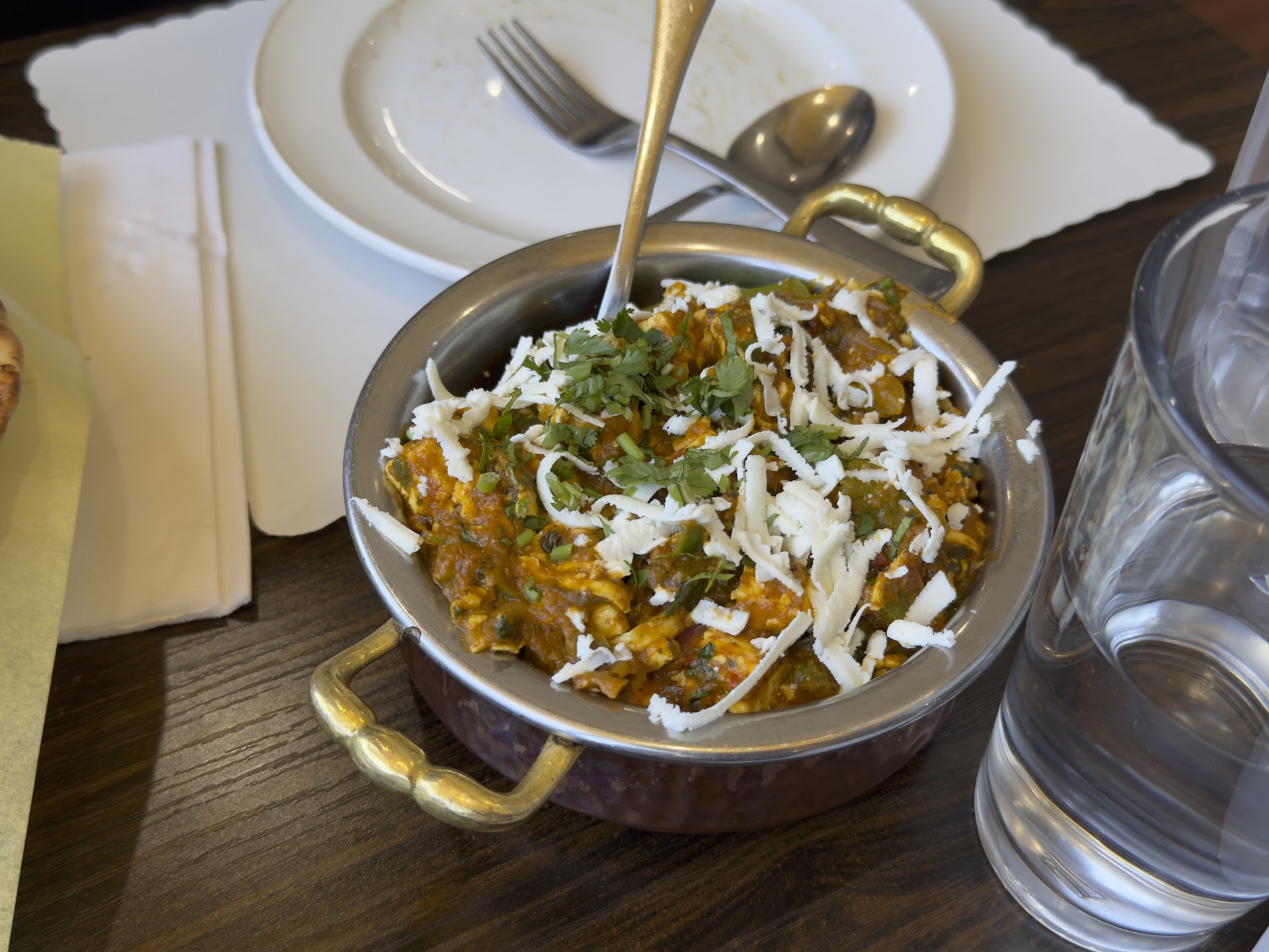 Portions are graciously enormous! I recommend the biryani (Indian mixed rice) dishes for their flavor and texture. I went with a medium spicy level and it does build up a fair bit (beware, sensitive eaters!). The hubby tried their lamb vindaloo and thought it was just alright (apparently, there's quite a heavy ginger flavor). Chai does not come with the meal, and would cost an additional fee. However, our meals came with a generous serving of rice and some yogurt-like sauce, which ended up being really appreciated given the strong flavors of our entrees. Not having known we'd be getting rice, we had also ordered a serving of garlic naan, which was delicious and came with 4 sizable pieces. They had also provided a tasty appetizer of flatbread/chips with some dipping sauces we had never tried before. Needless to say, we had PLENTY of leftovers for the week! They provided us with nice containers to wrap it all up and we left very happy and satisfied. Thanks!