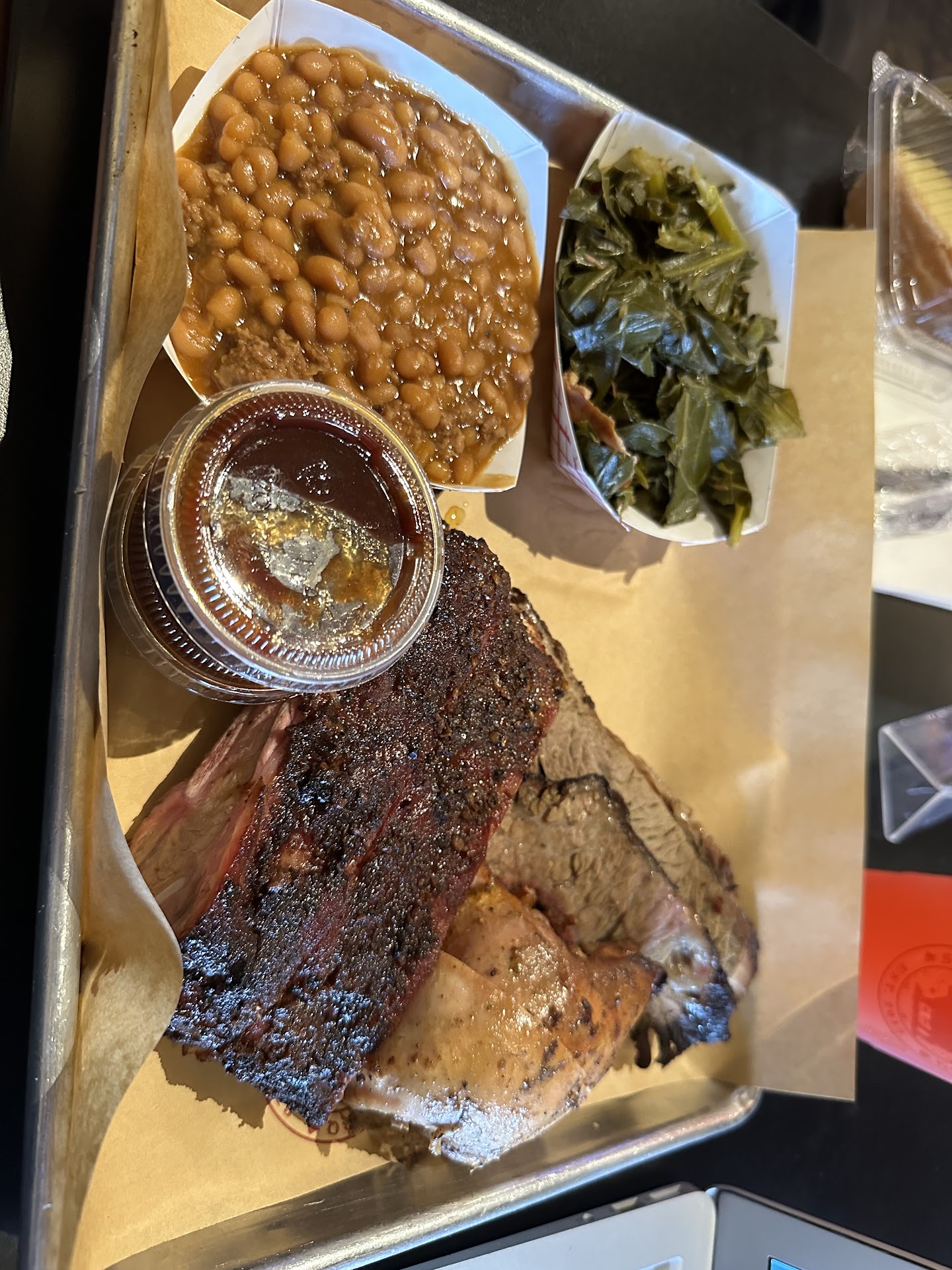 $41 for my meal of a 3 meat combo, 2 sides , lemonade and 7 up cake. Not bad IMO.