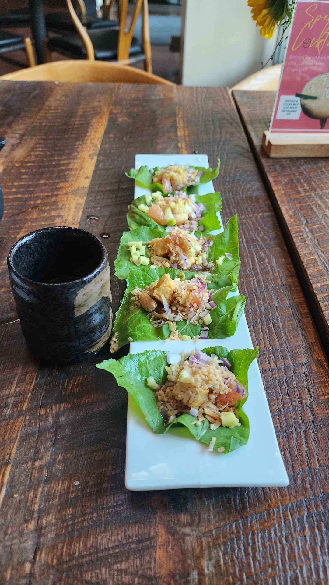 I ordered Miang Kum with tofu substituted for shrimp, but I can’t imagine it could have been any more flavorful. We sat there, amazed, trying to savor every bite. We’re already looking forward to coming back for the Chicken Satay, Choo Chee Salmon, Gai Gra Prow, and...