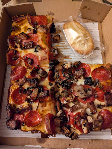 Read moreIt was a very good pizza, very small, 6" x 8" (by my measurements), but very good, with pepperoni, mushrooms and "Italian sausage". I put that sausage in quotes because it's not American type Italian sausage. It's more like pan fried salumi, or thick bacon pieces. (I KNOW, it's a chopped up sausage link, but is dry and overcooked in comparison to what you'd want.) Not that I didn't like it, but it wasn't what I expected.