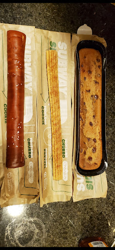 Ā Ā Ā Read moreMy partner and I went her for dinner the other night while they are doing the sidekick promotion offering a footlong churro, pretzel, and cookie. Our subs were good and the footlong sidekicks were rather mixed. The churro was just decent, nothing to write home about, the pretzel was more like a bagel than a pretzel in reality although the honey mustard was good. But the cookie, the cookie was amazing, Delectable even. The meltiness of the chocolate chips in the cookie, the sheer quantity of cookie I was presented with, everything you could imagine and more. We were able to get 2 nights out of the cookie which obviously wasn't as good as the first night but overall...