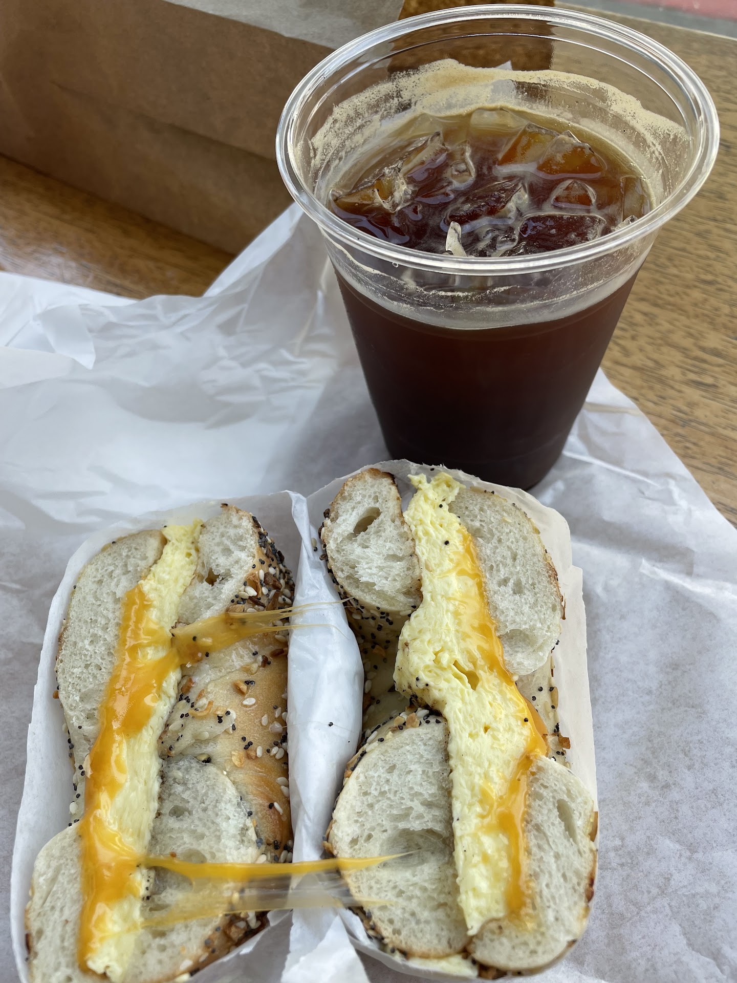 So I grab my coffee mug and fill it up. $3 for unlimited refill coffee is a great deal, and the coffee was pretty good. Nothing amazing, but tasty. I got a ginger cookie which was delicious - nice and crispy on the edges, chewy on the inside, and loaded with ginger.