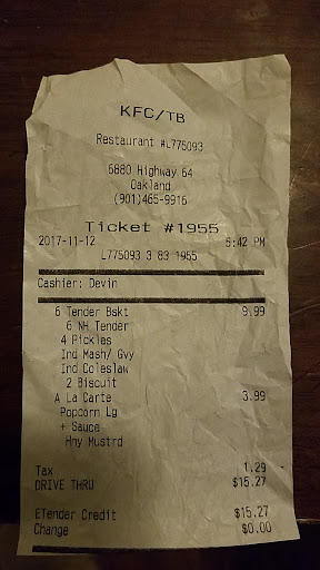 Ā Ā Ā Read moreThis is the worst fast food restaurant I have ever visited. This place repeatedly has bad service and unacceptable food dining in and the drive thru. I live in the area close to this restaurant and have given the several opportunities to change my opinion but they actually go further down each time. I just went thru the drive thru today and ordered a taco and burrito cravings pack which I have ordered a couple times before. The girl told me that āthey donāt sell that anymoreā. I told her it is listed on their website and Iām looking at it on their menu board. She repeated several times that they donāt sell that anymore. I asked why is it listed on the menu board if they donāt sell it? The reply was I donāt know. What do you want to order? I have had several issues with this Taco Bell / KFC site in Oakland TN hoping that change is coming but to no avail. Leaving without ordering anything I drove over to Burger King where the staff is extremely pleasant and attentive. The managers/owners of Taco Bell / KFC should be ashamed of their employees. I will never again eat at a Taco Bell or KFC due to their management is inept to hire qualified employees. Do not ever go to...