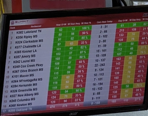 This locations drive through wait times average over 5m after you order, at pretty much any time of day, and I've seen as high as 20m. You can literally see their scoreboard from the dining room. They lose an forget orders, get them wrong, don't have pickup orders ready, and the employees argue with you about how a 10 or 15 minute wait time is normal at a Taco Bell. Their corporate management knows, they see the metrics. They just don't care. This location needs to whither and be closed. It's an...