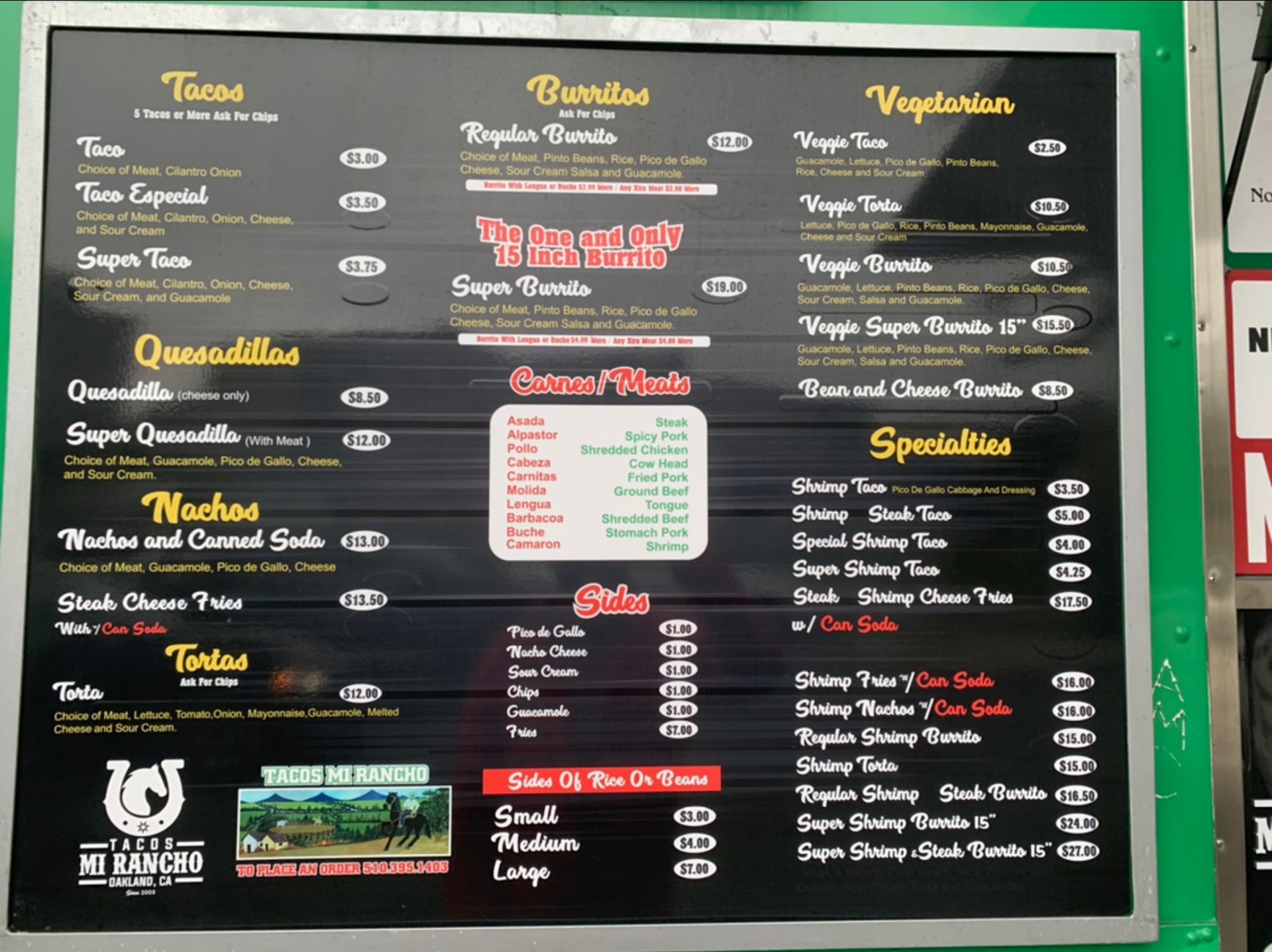 We call this the zombie truck and for good reason lol the very first time we pulled up a couple of years ago, there were people EVERYWHERE, leaning on the side of the truck, sitting in front of it, leaning against cars...and everyone was stuffing their faces and looked zombie like. We said WELL that food has to be good! AND IT IS!! We just got back from a weekend getaway to the Bay area and found it again on accident. I had 3 tacos, the shrimp one was delicious..could have had a little less of their sauce on it but it was still delicious. I also had a steak taco and got a taste of that steak! It was SO good! The chicken on my chicken taco was shredded which disappointed me. I thought it was weird to have shredded chicken on a street taco but they didnt offer me a choice when I ordered so I just ate it. It was okay, but I definitely preferred the grilled. Their steak is perfection, perfectly seasoned and delicious.