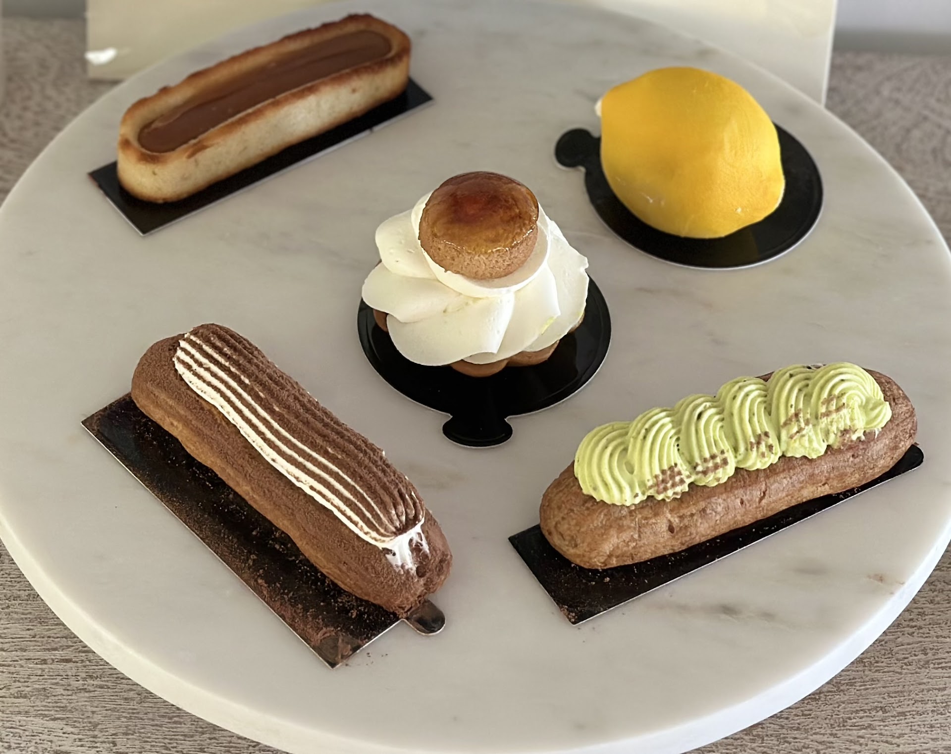 We particularly love their large format St. Honoré Tart (vanilla custard tart topped with white chocolate chantilly cream & cream filled choux puffs dipped in caramel), their Almond Gateau Basque (especially when it is cherry season!), their Pistachio Tart, their Salted Carmel Chouquette Tart, their Strawberry Chantilly Tart, their Red Chocolate Fleur Tart with chocolate and salted caramel, and their Pistachio Éclairs. All of our friends with young children also are obsessed with their Riz au Lait.