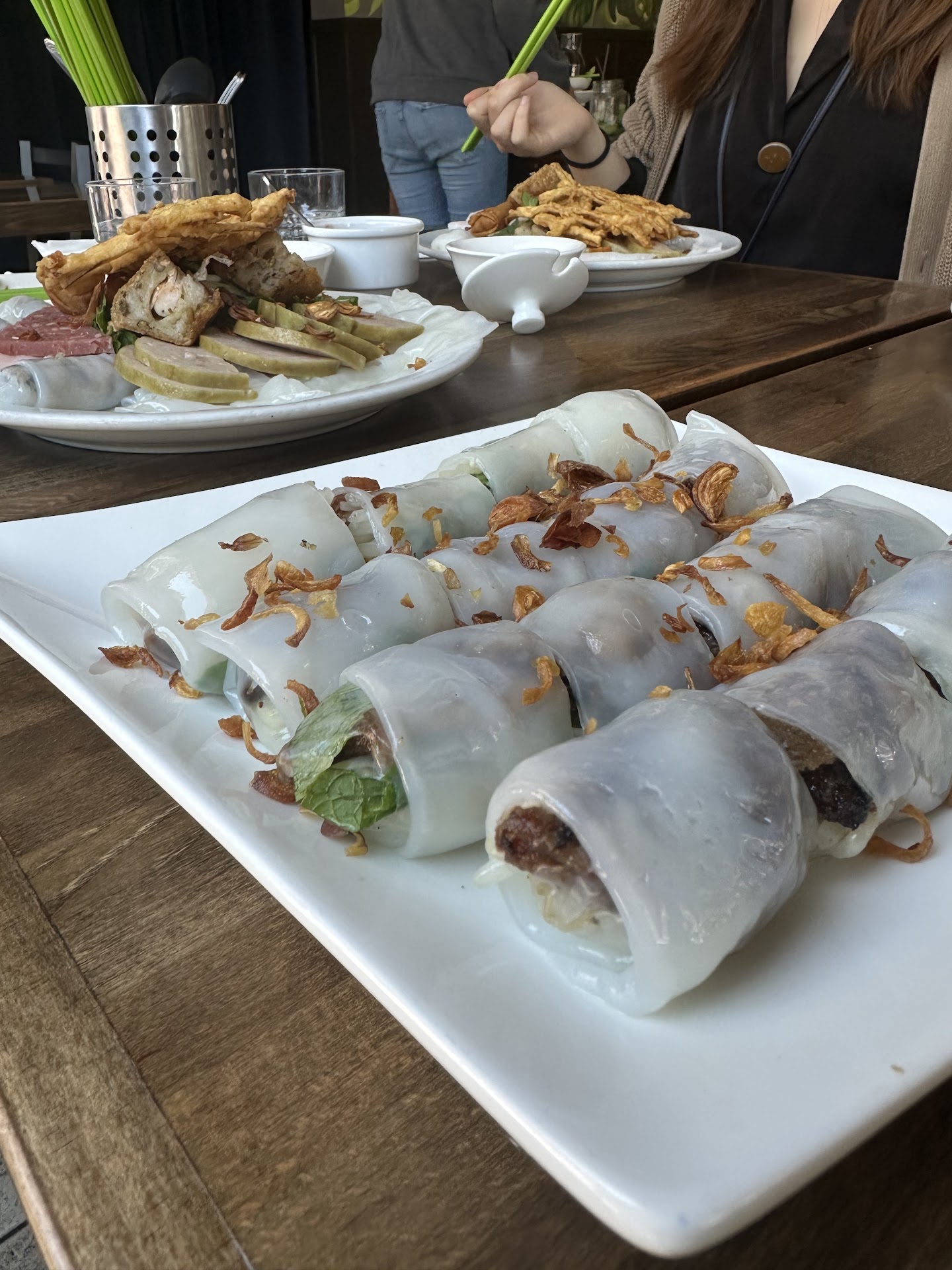 The Hanoi Banh Cuon Rolls, particularly the version with grilled lemongrass pork were amazing. The pork has a wonderful balance between sweetness and saltiness. The combination of bean sprouts, basil, and soft steamed rice rolls complemented the pork beautifully, and the addition of fried shallots added a delightful crunch.