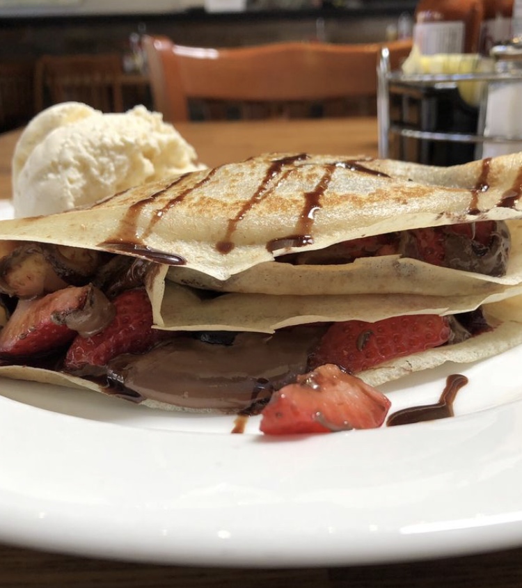 I've had my share of crepes growing up in Europe so wasn't impressed at all with this experience. I thought it was expensive $8.50 for how little the crepe was - definitely not to be shared. I felt the stuffing was too much and took away from actually tasting the crepe itself. Needless to day not enough chocolate in there...This 8mo prego lady definitely didn't get satisfied for her crepe craving :(