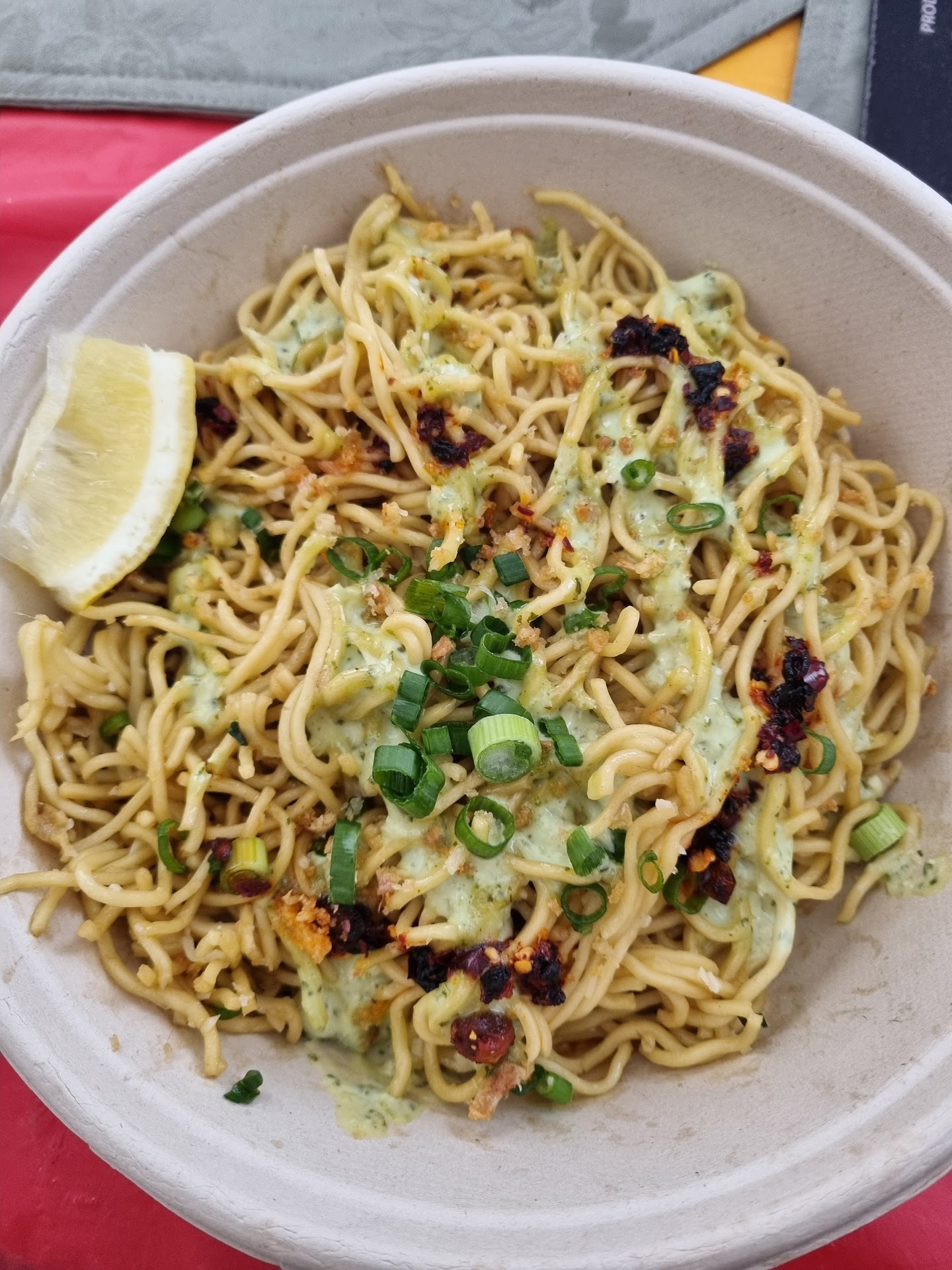 We ordered the Garlic Noodles,Garlic shrimp, dole whip,and lumpia. The garlic shrimp was good although I thought it would be nice if they had more chunks of garlic in there and a more pronounced garlic flavor. The shrimps were nicely grilled and were plump and delicious. The Garlic Noodles they made were of the dry style and not the dripping wet with sauce kind that I love. It's decent enough but I wouldn't go for it personally a second time. We got the chicken lumpia and it was the star of our order. The wrapper was deep fried until it was a perfect golden brown crunchy beauty on the outside and flavorful mix of ingredients on the inside. The dole whip we got was thick ,almost like frozen custard thick which was amazing. The pineapple flavor whip itself is a good palette cleanser or desert for the oily food you just ate but try to sprinkle some of the Li Hing Mui powder they have at the counter to kick the flavor up a notch.