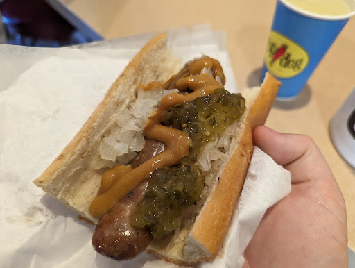 The guy they have working there now is a total jerk. He screwed up and gave my food to the guy two behind me, who ordered the exact same thing (hot and a kiel,) so I said, I think you gave him my food, and he got agitated. Other than than a large order of skinny regular dogs on the grill when I got there, my order was next and the only fat dogs on the grill. I was definitely before the other guy. Several more people behind me were then given their food as well, like 4 or so. I politely asked him if he had a hot and a kiel on the grill, because I knew he gave my food to the wrong person. He got all upset and said "you did this last time," or something crazy like that. I haven't been in there in a year or so, much less ever seen this jerk. I said, hey, you have the wrong person, I haven't been in here in over a year, but he continued to say all kinds of crazy stuff about how I have an attitude and that some dogs take longer than others, yet he gave away my exact order to the someone that ordered after me. He got so agitated, I thought he wanted to fight. I have no idea why this guy reacted this way, considering he made a mistake, but he has no business dealing with the public. He is unbalanced and the owner should really look at him closely. I'm never going back in there and unless you want to be accosted for no reason, and have a lunatic get all angry at you, I suggest you...